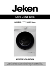 LAVE-LINGE 12KG MODÈLE : YYY25LL25 blanc NOTICE D’UTILISATION Avant l’installation ou la première utilisation de cet appareil, lire attentivement cette notice. La conserver soigneusement par la suite. TABLE DES MATIÈRES TABLE DES MATIÈRES ........................................................................................ 1 AVERTISSEMENTS.............................................................................................. 2 CONSIGNES DE SÉCURITÉ .................................................................................. 3 DESCRIPTION DE L’APPAREIL .......................................................................... 13 INSTALLATION ................................................................................................. 14 BANDEAU DE COMMANDES ........................................................................... 24 UTILISATION .................................................................................................... 33 ENTRETIEN ET NETTOYAGE ............................................................................. 39 PANNES ET SOLUTIONS ................................................................................... 42 GARANTIE ........................................................................................................ 46 CARACTÉRISTIQUES TECHNIQUES................................................................... 47 PROTECTION DE L’ENVIRONNEMENT ............................................................. 52 1 AVERTISSEMENTS Vous venez d'acheter notre produit et nous vous remercions. Nous apportons un soin particulier au design, à l'ergonomie et à la simplicité d'usage de nos produits. Nous espérons que cet appareil vous donnera entière satisfaction. Dans le souci d'une amélioration constante de nos produits, nous nous réservons le droit d'apporter à leurs caractéristiques techniques, fonctionnelles ou esthétiques toutes modifications liées à leur évolution. LISEZ ATTENTIVEMENT CES INSTRUCTIONS AVANT D'UTILISER L'APPAREIL ET CONSERVEZ-LES POUR POUVOIR LES CONSULTER ULTÉRIEUREMENT. 2 CONSIGNES DE SÉCURITÉ CONSIGNES GÉNÉRALES DE SÉCURITÉ QUANT À L'UTILISATION D'UN APPAREIL ÉLECTRIQUE 1. AVERTISSEMENT : afin d’éviter tout risque d’incendie, d’électrocution ou de blessure, veillez à toujours suivre les consignes de sécurité suivantes quand vous utilisez un appareil électrique. 2. Veillez à ce que les différents types d’emballage (cartons, sacs en plastique, polystyrène, bandes collantes, liens, etc.) soient hors de portée des enfants. Ces éléments comportent un risque potentiel. 3. Lors du déballage de l'appareil, de son installation et avant chaque utilisation, vérifiez son bon état général. Si vous constatez une quelconque anomalie sur l'appareil, le cordon d'alimentation ou la fiche, n'utilisez pas l'appareil et adressez-vous au service aprèsvente pour qu'il soit vérifié ou réparé. 3 4. Cet appareil n’est pas destiné à un usage professionnel ou commercial, ou pour d’autre but que celui pour lequel il a été conçu. Cet appareil peut cependant être utilisé dans des applications domestiques et analogues telles que : - des coins cuisine réservés au personnel dans des magasins, bureaux et autres environnements professionnels ; - des fermes ; - l’utilisation par les clients des hôtels, motels et autres environnements à caractère résidentiel ; - des environnements du type chambres d’hôtes. - des emplacements prévus pour un usage collectif dans des immeubles d’habitation ou dans des laveries automatiques. Mais n’est pas destiné à être utilisé dans : - la restauration et autres applications similaires y compris la vente au détail. 5. L’installation du produit doit respecter strictement les exigences de la norme NF C15100. 4 6. Avant de brancher votre appareil, assurezvous que la tension électrique de votre domicile correspond à celle indiquée sur la plaque signalétique de l'appareil. 7. Ne laissez pas l'appareil sans surveillance lorsqu'il fonctionne. 8. Cet appareil peut être utilisé par des enfants âgés d'au moins 8 ans et par des personnes ayant des capacités physiques, sensorielles ou mentales réduites ou dénuées d’expérience ou de connaissance, s'ils (si elles) sont correctement surveillé(e)s ou si des instructions relatives à l'utilisation de l'appareil en toute sécurité leur ont été données et si les risques encourus ont été appréhendés. Les enfants ne doivent pas jouer avec l’appareil. Le nettoyage et l'entretien par l'usager ne doivent pas être effectués par des enfants sans surveillance. 9. Pour éviter tout risque d’incendie, d’électrocution ou autres blessures aux personnes, ne plongez jamais l'appareil, le cordon d’alimentation ou la fiche dans l’eau ou tout autre liquide. Ne manipulez pas l’appareil et la fiche avec les mains mouillées. 5 10. Le cordon d'alimentation doit être manipulé avec précaution. L'appareil ne doit pas être tiré par le cordon. Celui-ci ne doit pas être placé sur le rebord d'une table ou d'un plan de travail. Il ne doit pas entrer en contact avec des surfaces chaudes. Lorsque vous le débranchez, tirez-le toujours au niveau de la fiche, ne tirez pas sur le câble lui-même. 11. AVERTISSEMENT : Lors du positionnement de l’appareil, s’assurer que le cordon d’alimentation n’est pas coincé ni endommagé. 12. Si le cordon d’alimentation est endommagé, il doit être remplacé par le fabricant, son service après-vente ou une personne de qualification similaire, afin d'éviter tout danger. 13. Toute intervention sur l'appareil pendant son installation ou toute réparation doit être effectuée par le service après-vente ou une personne de qualification similaire. 14. Toute intervention ou nettoyage sur le produit doit se faire hors alimentation. Pour cela, la fiche d’alimentation doit être déconnectée de la prise de courant. 6 15. Le s