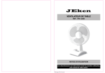 VENTILATEUR DE TABLE REF : TP5-12AN NOTICE D’UTILISATION Lire attentivement ces instructions avant la première utilisation, puis conserver cette notice. 7999 Jeken TP5-12AN_IB CONSIGNES DE SECURITE Lors de l’utilisation de tout appareil électrique, certaines règles essentielles de sécurité doivent être respectées, afin de réduire tout risque d’incendie, d’électrocution ou de blessures. 1. Cet appareil peut être utilisé par des enfants âgés d’au moins 8 ans et par des personnes ayant des capacités physiques, sensorielles ou mentales réduites ou dénuées d’expérience ou de connaissance, s’ils (si elles) sont correctement surveillé(e)s ou si des instructions relatives à l’utilisation de l’appareil en toute sécurité leur ont été données et si les risques encourus ont été appréhendés. Les enfants ne doivent pas jouer avec l’appareil. Le nettoyage et l’entretien par l’usager ne doivent pas être effectués par des enfants sans surveillance. 2. Lisez toutes les instructions et conservez la notice. 3. Ne jamais toucher les surfaces en mouvement. 4. S’assurer que l’appareil est branché sur une prise murale du secteur 230V~50Hz avec mise à la terre. Ne jamais brancher le ventilateur avant que le montage ne soit complètement achevé. 5. Pour éviter tout risque d’électrocution, ne jamais mettre le fil, la prise ou l’appareil dans l’eau ou dans tout autre liquide. 6. Ne pas laisser l’appareil à la portée des enfants. Ne jamais faire fonctionner sans avoir monté et serré la vis de blocage de la grille, afin d’empêcher d’ouvrir la grille pendant l’utilisation. Ne pas faire fonctionner cet appareil avec une hélice cassée ou endommagée. 7. S’assurer que l’appareil est débranché avant toute opération de nettoyage ou d’entretien. Ne touchez le câble ou la prise qu’avec des mains sèches. 8. Ne pas utiliser un appareil dont le fil ou la prise est défectueux. Ne pas utiliser l’appareil après que celuici ait présenté un mauvais fonctionnement ou ait été endommagé de quelque manière que ce soit. Veuillez contacter le service après-vente. 9. Ne pas introduire de corps étranger à travers la grille, lorsque le ventilateur fonctionne. 10. Ne pas utiliser en plein air. 11. Ne pas laisser le fil pendre au bord d’une table. Ne pas mettre l’appareil au contact d’une surface chaude. 12. Ne pas placer cet appareil sur ou près d’un brûleur à gaz ou électrique. 13. Ne pas utiliser cet appareil pour un autre usage que celui auquel il est destiné. 1 2 7999 Jeken TP5-12AN_IB 14. Avant de brancher l’appareil, vérifiez que le voltage CARACTERISTIQUES spécifié (230V~50Hz) correspond à celui de votre installation. 15. Si le câble d’alimentation est endommagé, il doit être remplacé par le fabricant, son service après-vente ou des personnes de qualification similaire afin d’éviter tout danger. 16. Une fois que l’appareil est assemblé, il est interdit de démonter les grilles. 17. Avertissement ! Une fois l’installation terminée, il est strictement interdit de retirer les grilles de protection du ventilateur pour le nettoyage ou la maintenance. ALIMENTATION : 230V FREQUENCE : 50Hz DESCRIPTION NE PAS IMMERGER. USAGE MENAGER UNIQUEMENT. 1. 2. 3. 4. 5. 6. 7. Socle du moteur Grille arrière Ecrou de fixation de la grille arrière Hélice Ecrou à cabochon de fixation de l’hélice Grille avant Vis de sécurité 3 4 7999 Jeken TP5-12AN_IB PUISSANCE : 40W MONTAGE A. ASSEMBLAGE : Montez la grille arrière (2) sur le moteur et fixez-la au moyeu de l’écrou (3). UTILISATION Le ventilateur est pourvu de 4 boutons poussoirs (0 - 1 - 2 - 3) qui correspondent aux fonctions suivantes : 0- arrêt 1- vitesse faible 2- allure moyenne 3- pleine vitesse Engagez l’hélice (4) sur l’arbre du moteur et fixez-la au moyeu à l’aide de l’écrou à cabochon. Pour mettre en fonctionnement le ventilateur, il suffit d’appuyer sur l’un des boutons marqués 1, 2 ou 3. Pour l’arrêter, appuyez sur le bouton marqué 0. ATTENTION Le filetage de l’écrou étant à gauche, le serrage de cet écrou (5) s’opére en le tournant dans le sens inverse des aiguilles d’une montre. OSCILLATION Il suffit d’enfoncer le bouton situé sur l’axe vertical à l’arrière du moteur pour enclencher l’oscillation. Pour arrêter l’oscillation, relevez le bouton à sa position initiale. C. INCLINAISON La rotule étant munie de cliquets, il suffit d’incliner le ventilateur soit vers le haut, soit vers le bas pour diriger le flux d’air selon vos préférences. B. Vissez l’anneau en plastique sur la grille avant (6) et serrez la vis légèrement jusqu’à ce que l’anneau en plastique tienne par lui-même. Emboîtez ensuite la grille avant (6) sur la grille arrière (2) en faisant en sorte que les 2 grilles soient maintenues par l’anneau et vissez le tout fermement à l’aide de la vis de sécurité (7). ENTRETIEN 1. 2. 3. 4. 5. 6. Pour démonter la grille, prenez soin d’ôter la vis de sûreté sur l’étrier inférieur. Nettoyez soigneusement le ventilateur avant un stockage de longue durée et mettez-le dans un sac en plastique. Prenez soin de ranger l’appareil durant la saison froide dans un endroit sec à l’abri de l’humidité. Au cours de son utilisation, prenez soin de le maintenir propre en le nettoyant périodiquement avec un chiffon imbibé d’eau savonneuse (câble d’alimentation débranché). Prenez soin de ne pas utiliser de détergents ou de solvants. Suivez attentivement la procédure de montage lorsque vous souhaitez assembler de nouveau le ventilateur. 5 6 7999 Jeken TP5-12AN_IB Enlèvement des appareils ménagers usagés : REPARATIONS En cas de panne ou de défaut, rapportez cet appareil au magasin où vous l’avez acheté ou contactez le service après-vente. Ne jamais essayer de réparer soi-même cet appareil. TOUTE REPARATION DOIT ETRE EFFECTUEE UNIQUEMENT PAR UN TECHNICIEN