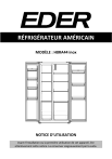 RÉFRIGÉRATEUR AMÉRICAIN MODÈLE : H8RA44 inox NOTICE D’UTILISATION Avant l’installation ou la première utilisation de cet appareil, lire attentivement cette notice. La conserver soigneusement par la suite. TABLE DES MATIÈRES TABLE DES MATIÈRES ........................................................................................ 1 CONSIGNES DE SÉCURITÉ .................................................................................. 3 DESCRIPTION DE L’APPAREIL .......................................................................... 11 INSTALLATION ................................................................................................. 12 RÉGLAGE DE LA TEMPÉRATURE ...................................................................... 18 UTILISATION .................................................................................................... 25 ENTRETIEN ET MAINTENANCE ........................................................................ 28 MODIFICATION DU SENS D’OUVERTURE DES PORTES ................................... 31 GUIDE DE DÉPANNAGE ................................................................................... 33 CONSEILS POUR RÉDUIRE VOTRE CONSOMMATION D’ÉNERGIE ................... 36 GARANTIE ........................................................................................................ 37 CARACTÉRISTIQUES TECHNIQUES................................................................... 38 SCHÉMA ÉLECTRIQUE ..................................................................................... 44 PROTECTION DE L’ENVIRONNEMENT ............................................................. 45 1 Vous venez d'acheter notre produit et nous vous remercions. Nous apportons un soin particulier au design, à l'ergonomie et à la simplicité d'usage de nos produits. Nous espérons que cet appareil vous donnera entière satisfaction. Dans le souci d'une amélioration constante de nos produits, nous nous réservons le droit d'apporter à leurs caractéristiques techniques, fonctionnelles ou esthétiques toutes modifications liées à leur évolution. LISEZ ATTENTIVEMENT CES INSTRUCTIONS AVANT D'UTILISER L'APPAREIL ET CONSERVEZ-LES POUR POUVOIR LES CONSULTER ULTÉRIEUREMENT. 2 CONSIGNES DE SÉCURITÉ CONSIGNES GÉNÉRALES DE SÉCURITÉ QUANT À L'UTILISATION D'UN APPAREIL ÉLECTRIQUE 1. AVERTISSEMENT : afin d’éviter tout risque d’incendie, d’électrocution ou de blessure, veillez à toujours suivre les consignes de sécurité suivantes quand vous utilisez un appareil électrique. 2. Veillez à ce que les différents types d’emballage (cartons, sacs en plastique, polystyrène, bandes collantes, liens, etc.) soient hors de portée des enfants. Ces éléments comportent un risque potentiel. 3. Lors du déballage de l'appareil, de son installation et avant chaque utilisation, vérifiez son bon état général. Si vous constatez une quelconque anomalie sur l'appareil, le cordon d'alimentation ou la fiche, n'utilisez pas l'appareil et adressez-vous au service après-vente pour qu'il soit vérifié ou réparé. 4. Cet appareil n’est pas destiné à un usage professionnel ou commercial, ou pour d’autre but que celui pour lequel il a été conçu. Cet appareil peut cependant être utilisé dans des applications domestiques et analogues telles que : 3 - des coins cuisine réservés au personnel dans des magasins, bureaux et autres environnements professionnels ; - des fermes ; - l’utilisation par les clients des hôtels, motels et autres environnements à caractère résidentiel ; - des environnements du type chambres d’hôtes. Mais n’est pas destiné à être utilisé dans : - la restauration et autres applications similaires y compris la vente au détail. - également non destiné à être utilisé comme appareil encastrable. 5. L’installation du produit doit respecter strictement les exigences de la norme NF C15-100. 6. Avant de brancher votre appareil, assurez-vous que la tension électrique de votre domicile correspond à celle indiquée sur la plaque signalétique de l'appareil. 7. Ne laissez pas l'appareil sans surveillance lorsqu'il fonctionne. 8. Cet appareil peut être utilisé par des enfants âgés d'au moins 8 ans et par des personnes ayant des capacités physiques, sensorielles ou mentales réduites ou dénuées d’expérience ou de connaissance, s'ils (si elles) sont correctement surveillé(e)s ou si des 4 instructions relatives à l'utilisation de l'appareil en toute sécurité leur ont été données et si les risques encourus ont été appréhendés. Les enfants ne doivent pas jouer avec l’appareil. Le nettoyage et l'entretien de l'appareil ne doivent pas être effectués par des enfants, à moins qu'ils ne soient âgés d'au moins 8 ans et qu'ils soient sous la surveillance d'un adulte. 9. Cet appareil n’est pas un jouet. Les enfants de moins de 8 ans ne doivent pas utiliser l'appareil sans la surveillance d'un adulte. 10. Pour éviter tout risque d’incendie, d’électrocution ou autres blessures aux personnes, ne plongez jamais l'appareil, le cordon d’alimentation ou la fiche dans l’eau ou tout autre liquide. Ne manipulez pas l’appareil et la fiche avec les mains mouillées. 11. Le cordon d'alimentation doit être manipulé avec précaution. L'appareil ne doit pas être tiré par le cordon. Celui-ci ne doit pas être placé sur le rebord d'une table ou d'un plan de travail. Il ne doit pas entrer en contact avec des surfaces chaudes. Lorsque vous le débranchez, tirez-le toujours au niveau de la fiche, ne tirez pas sur le câble lui-même. 5 12. AVERTISSEMENT : Lors du positionnement de l’appareil, s’assurer que le cordon d’alimentation n’est pas coincé ni endommagé. 13. Si le cordon d’alimentation est endommagé, il doit être remplacé par le fabricant, son service après-vente ou une personne de qualification similaire, afin d'éviter tout danger. 14. Toute intervention sur l'