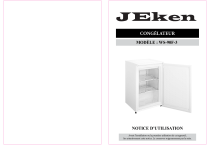 CONGÉLATEUR MODÈLE : WS-90F-3 NOTICE D’UTILISATION Avant l’installation ou la première utilisation de cet appareil, lire attentivement cette notice. La conserver soigneusement par la suite. TABLE DES MATIERES AVERTISSEMENTS CONSIGNES DE SÉCURITÉ INSTRUCTIONS D’INSTALLATION MODIFICATION DU SENS D’OUVERTURE DE LA PORTE UTILISATION DE L’APPAREIL NETTOYAGE ET ENTRETIEN RESPECT DES RÈGLES D’HYGIÈNE ALIMENTAIRE RÉSOLUTION DES PROBLÈMES CONSEILS POUR RÉDUIRE VOTRE CONSOMMATION D’ÉNERGIE CARACTÉRISTIQUES RÉPARATIONS 1 3 8 11 12 14 16 17 18 19 20 AVERTISSEMENTS Le fabricant décline toute responsabilité en cas de blessure causée à des personnes ou de dégât matériel dus à la non-observation des instructions d’entretien et à l’usage inadéquat de l’appareil. Après avoir retiré l’emballage des différentes pièces de l’appareil, vérifiez que celui-ci se trouve en parfait état. Si vous avez des doutes à ce sujet, n’utilisez pas l’appareil et adressezvous à un vendeur ou à un technicien qualifié. 1 Veillez également à ce que les différents types d’emballage (cartons, sacs en plastique, polystyrène, bandes collantes, liens, etc.) soient hors de portée des enfants. Ces éléments comportent un risque potentiel. Avant d’utiliser l’appareil, vérifiez si le courant de votre secteur correspond à celui qui est indiqué sur la plaque signalétique. Quand vous utilisez cet appareil, veuillez suivre les consignes de sécurité suivantes. MISES EN GARDE IMPORTANTES. ATTENTIVEMENT ET CONSERVER RÉFÉRENCE ULTÉRIEURE. 2 LIRE POUR CONSIGNES DE SÉCURITÉ Avant l’utilisation de cet appareil, lisez attentivement la notice d’utilisation. Conservez cette notice avec soin. Vérifiez premièrement si la tension indiquée sur le produit correspond à votre alimentation électrique. Avertissement : afin d’éviter tout risque d’incendie, d’électrocution ou de blessure, veillez à toujours suivre les principales consignes de sécurité suivantes quand vous utilisez un appareil électrique. Vérifiez régulièrement l’état de votre appareil. N’utilisez pas l’appareil si ce dernier est endommagé. Ne manipulez ni l’appareil, ni la prise avec les mains mouillées. N’utilisez pas l’appareil si le cordon d’alimentation ou la prise est endommagé(e). N’utilisez pas l’appareil s’il est tombé, s’il est endommagé, s’il est resté dehors ou s’il est tombé dans l’eau. Retournez l’appareil au service aprèsvente le plus proche pour qu’il soit réparé ou ajusté. Ne placez pas l’appareil sur le cordon d’alimentation. Ne laissez en aucune façon le cordon s’enrouler ou s’emmêler. Tenez le cordon éloigné des surfaces chaudes. Ne retirez pas la prise en tirant sur le cordon. Pour la retirer, prenez-la en main et retirez-la prudemment de la prise murale. Utilisez uniquement une rallonge certifiée avec l’ampérage en vigueur dans votre pays. Des rallonges certifiées avec un ampérage inférieur risquent de surchauffer. Veillez à ce que personne ne trébuche sur le cordon ou la prise. Attention : débranchez toujours le cordon d'alimentation ou coupez le disjoncteur avant de procéder au nettoyage. Si le cordon d’alimentation est endommagé, il doit être remplacé par le fabricant, son service après-vente ou une personne de qualification similaire, afin d'éviter tout danger. Toute réparation doit être effectuée par le service aprèsvente ou des personnes de qualification similaire. Tous travaux électriques requis dans le cadre de l’installation de cet appareil doivent être effectués par un électricien qualifié ou une personne compétente. Ne tirez et ne portez pas l’appareil par le cordon d’alimentation, n’utilisez pas le cordon comme poignée, ne coincez pas le fil dans la porte et ne le tirez pas le long de bords ou angles acérés. Eteignez et débranchez l’appareil lorsque vous ne l’utilisez pas. N’utilisez pas l’appareil près de matériaux inflammables. 3 4 N’utilisez pas d’autres accessoires que ceux étant fournis avec l’appareil. Cet appareil peut être utilisé par des enfants âgés d'au moins 8 ans et par des personnes ayant des capacités physiques, sensorielles ou mentales réduites ou dénuées d’expérience ou de connaissance, s'ils (si elles) sont correctement surveillé(e)s ou si des instructions relatives à l'utilisation de l'appareil en toute sécurité leur ont été données et si les risques encourus ont été appréhendés. Les enfants ne doivent pas jouer avec l’appareil. Le nettoyage et l'entretien par l'usager ne doivent pas être effectués par des enfants sans surveillance. Il convient de surveiller les enfants pour s’assurer qu’ils ne jouent pas avec l’appareil. Cet appareil n’est pas un jouet. Ayez une stricte surveillance quand vous utilisez l’appareil en présence d’enfants ou d’animaux domestiques. Ne stockez pas et n’utilisez pas d’essence ou toute autre vapeur ou liquide inflammable à proximité de cet appareil. Les fumées peuvent entraîner un incendie ou une explosion. Cet appareil est destiné à être utilisé dans des applications domestiques et analogues telles que : - des coins cuisine réservés au personnel dans des magasins, bureaux et autres environnements professionnels ; - des fermes ; - l’utilisation par les clients des hôtels, motels et autres environnements à caractère résidentiel ; - des environnements du type chambres d’hôtes. Toutes interventions ou nettoyage sur le produit doivent se faire hors alimentation. Pour cela la fiche d’alimentation doit être déconnectée de la prise de courant. Les enfants de moins de trois ans doivent être tenus à l'écart de l'appareil à moins d'être constamment surveillés. Pour éviter tout risque d’incendie, d’électrocution ou autres blessures aux personnes, ne plongez jamais le cordon d’alimentation ou la prise dans de l’eau ou tout autre 