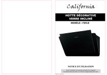 HOTTE DÉCORATIVE VERRE INCLINÉ MODÈLE : FD9-B NOTICE D’UTILISATION Avant l’installation ou la première utilisation de cet appareil, lire attentivement cette notice. La conserver soigneusement par la suite. FD9-B v1 (aPR-2016) 1 2 7 8 14 15 16 17 AVERTISSEMENTS Le fabricant décline toute responsabilité en cas de blessure causée à des personnes ou de dégât matériel dus à la non-observation des instructions d’entretien et à l’usage inadéquat de l’appareil. Après avoir retiré l’emballage des différentes pièces de l’appareil, vérifiez que celui-ci se trouve en parfait état. Si vous avez des doutes à ce sujet, n’utilisez pas l’appareil et adressezvous à un vendeur ou à un technicien qualifié. Veillez également à ce que les différents types d’emballage (cartons, sacs en plastique, polystyrène, bandes collantes, liens, etc.) soient hors de portée des enfants. Ces éléments comportent un risque potentiel.Avant d’utiliser l’appareil, vérifiez si le courant de votre secteur correspond à celui qui est indiqué sur la plaque signalétique. 1 Quand vous utilisez cet appareil, veuillez suivre les consignes de sécurité suivantes. MISES EN GARDE IMPORTANTES. LIRE ATTENTIVEMENT ET CONSERVER POUR RÉFÉRENCE ULTÉRIEURE. CONSIGNES DE SÉCURITÉ Avant l’utilisation de cet appareil, lisez attentivement la notice d’utilisation. Conservez cette notice avec soin. Vérifiez premièrement si la tension indiquée sur le produit correspond à votre alimentation électrique. Avertissement : afin d’éviter tout risque d’incendie, d’électrocution ou de blessure, veillez à toujours suivre les principales consignes de sécurité suivantes quand vous utilisez un appareil électrique. Vérifiez régulièrement l’état de votre appareil. N’utilisez pas l’appareil si ce dernier est endommagé. Ne manipulez ni l’appareil, ni la prise avec les mains mouillées. N’utilisez pas l’appareil si le cordon d’alimentation ou la prise est endommagé(e). N’utilisez pas l’appareil s’il est tombé, s’il est endommagé, s’il est resté dehors ou s’il est tombé dans l’eau. Retournez l’appareil au service après- vente le plus proche pour qu’il soit réparé ou ajusté. Ne tirez et ne portez pas l’appareil par le cordon d’alimentation, n’utilisez pas le cordon comme poignée, ne 2 coincez pas le fil dans la porte et ne le tirez pas le long de bords ou angles acérés. Ne placez pas l’appareil sur le cordon d’alimentation. Ne laissez en aucune façon le cordon s’enrouler ou s’emmêler. Tenez le cordon éloigné des surfaces chaudes. Ne retirez pas la prise en tirant sur le cordon. Pour la retirer, prenez-la en main et retirez-la prudemment de la prise murale. Utilisez uniquement une rallonge certifiée avec l’ampérage en vigueur dans votre pays. Des rallonges certifiées avec un ampérage inférieur risquent de surchauffer. Veillez à ce que personne ne trébuche sur le cordon ou la prise. Attention : débranchez toujours le cordon d'alimentation ou coupez le disjoncteur avant de procéder au nettoyage. Si le cordon d’alimentation est endommagé, il doit être remplacé par le fabricant, son service après-vente ou une personne de qualification similaire, afin d'éviter tout danger. Toute réparation doit être effectuée par le service aprèsvente ou des personnes de qualification similaire. Tous travaux électriques requis dans le cadre de l’installation de cet appareil doivent être effectués par un électricien qualifié ou une personne compétente. Eteignez et débranchez l’appareil lorsque vous ne l’utilisez pas. 3 N’utilisez pas l’appareil près de matériaux inflammables. N’utilisez pas d’autres accessoires que ceux étant fournis avec l’appareil. Cet appareil peut être utilisé par des enfants âgés d'au moins 8 ans et par des personnes ayant des capacités physiques, sensorielles ou mentales réduites ou dénuées d’expérience ou de connaissance, s'ils (si elles) sont correctement surveillé(e)s ou si des instructions relatives à l'utilisation de l'appareil en toute sécurité leur ont été données et si les risques encourus ont été appréhendés. Les enfants ne doivent pas jouer avec l’appareil. Le nettoyage et l'entretien par l'usager ne doivent pas être effectués par des enfants sans surveillance. Il convient de surveiller les enfants pour s’assurer qu’ils ne jouent pas avec l’appareil. Cet appareil n’est pas un jouet. Ayez une stricte surveillance quand vous utilisez l’appareil en présence d’enfants ou d’animaux domestiques. Ne nettoyez jamais l’appareil avec des produits liquides inflammables. Ne nettoyez jamais l’appareil avec des produits liquides inflammables. Les vapeurs risqueraient de provoquer un incendie ou une explosion. Ne stockez pas et n’utilisez pas d’essence ou toute autre vapeur ou liquide inflammable à proximité de cet appareil. Les fumées peuvent entraîner un incendie ou une explosion. 4 Cet appareil est destiné à être utilisé dans des applications domestiques et analogues telles que : - les coins cuisine réservés au personnel des magasins, bureaux et autres environnements professionnels ; - les fermes ; - l’utilisation par les clients des hôtels, motels et autres environnements à caractère résidentiel ; - les environnements du type chambres d’hôtes. Toutes interventions ou nettoyage sur le produit doivent se faire hors alimentation. Pour cela la fiche d’alimentation doit être déconnectée de la prise de courant. Pour éviter tout risque d’incendie, d’électrocution ou autres blessures aux personnes, ne plongez jamais le cordon d’alimentation ou la prise dans de l’eau ou tout autre liquide. Veuillez nettoyer la hotte et le filtre régulièrement, afin de garantir leur bon fonctionnement et leur efficacité. Nettoyez l’appareil en suivant soigneusement les consignes présentes dans cette notice, afin de pr