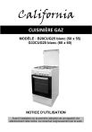 CUISINIÈRE GAZ MODÈLE : B28CUG25 blanc (50 x 55) G33CUG25 blanc (60 x 60) NOTICE D’UTILISATION Avant l’installation ou la première utilisation de cet appareil, lire attentivement cette notice. La conserver soigneusement par la suite. TABLE DES MATIÈRES TABLE DES MATIÈRES ........................................................................................ 1 AVERTISSEMENTS.............................................................................................. 2 CONSIGNES DE SÉCURITÉ .................................................................................. 3 DESCRIPTION DE L’APPAREIL .......................................................................... 14 INSTALLATION ................................................................................................. 16 UTILISATION .................................................................................................... 30 ENTRETIEN ET MAINTENANCE ........................................................................ 38 GUIDE DE DÉPANNAGE ................................................................................... 43 GARANTIE ........................................................................................................ 46 CARACTÉRISTIQUES TECHNIQUES................................................................... 47 1 AVERTISSEMENTS Vous venez d'acheter notre produit et nous vous remercions. Nous apportons un soin particulier au design, à l'ergonomie et à la simplicité d'usage de nos produits. Nous espérons que cet appareil vous donnera entière satisfaction. Dans le souci d'une amélioration constante de nos produits, nous nous réservons le droit d'apporter à leurs caractéristiques techniques, fonctionnelles ou esthétiques, toutes modifications liées à leur évolution. LISEZ ATTENTIVEMENT CES INSTRUCTIONS DANS LEUR INTEGRALITE AVANT D'UTILISER L'APPAREIL. CONSERVEZ-LES POUR POUVOIR LES CONSULTER ULTÉRIEUREMENT. Ce manuel a été préparé pour plusieurs modèles. Il est possible que votre produit ne dispose pas de certaines fonctions signalées dans ce manuel. Referez vous aux indications particulières figurant dans cette notice. 2 CONSIGNES DE SÉCURITÉ INSTRUCTIONS GÉNÉRALES L'UTILISATION DE L'APPAREIL DE SÉCURITÉ POUR 1. L'installation et la réparation de cet appareil doivent toujours être effectuées par un professionnel agréé ou un technicien qualifié conformément à cette notice et aux normes d’installation en vigueur. Le fabricant ne peut être tenu responsable d’installations incorrectes effectuées par des personnes non autorisées et non qualifiées. 2. Veuillez lire attentivement ce mode d'emploi. Ainsi, seulement de cette manière vous pouvez utiliser l'appareil en toute sécurité et de façon correcte. 3. Le four et la plaque de cuisson doivent être utilisés conformément aux instructions d'utilisation. 4. Le fabricant ne sera pas tenu responsable de tout dommage résultant d'une mauvaise utilisation ou manipulation. 5. Veuillez-vous assurer que les enfants de moins de 8 ans et les animaux domestiques soient à l'écart lors de l'utilisation. 6.AVERTISSEMENT : Risque d’incendie ; Ne stockez pas de matériaux ou d’objets sur la surface de cuisson. 7. Les conditions de réglage initial de cet appareil sont spécifiées sur l'étiquette. (ou sur la plaque signalétique) 3 8. AVERTISSEMENT : Cet appareil est destiné à la cuisson. Il ne doit pas être utilisé à d'autres fins comme le chauffage d'une pièce. 9. Ce produit est conçu pour un usage domestique. L'utilisation commerciale de l'appareil n'est pas autorisée. 10. N'essayez JAMAIS d'éteindre le feu avec de l'eau. Arrêtez le circuit de l'appareil (gaz ou électrique) et couvrez la flamme avec un couvercle ou une couverture anti-feu. 11. Les enfants de moins de 8 ans doivent être tenus à l'écart, s'ils ne peuvent pas être surveillés en permanence. 12. Cet appareil peut être utilisé par des enfants à partir de 8 ans, par des personnes ayant des capacités physiques, auditive ou mentales réduites ou ayant un manque d'expérience ou de connaissances à condition qu’elles aient reçu des instructions sur l’utilisation de l’appareil en pleine sécurité et qu’elles comprennent les dangers encourus. 13. Ne laissez pas les enfants jouer à proximité de l'appareil. Le nettoyage ou l’entretien de l'appareil ne doit pas être effectué par des enfants à moins qu'ils aient plus de 8 ans et qu'ils soient supervisés par des adultes. 4 14.Veuillez-vous assurer que des rideaux, tissus, papier ou tout autre matériau inflammable soient tenus à l'écart de l'appareil avant de commencer à utiliser l'appareil. Ne placez pas de matériaux inflammables sur ou dans l'appareil. 15. Ne placez pas sur la table de cuisson d'objets que les enfants peuvent atteindre. 16. Les matériaux d’emballage sont dangereux pour les enfants. Conserver les emballages hors de la portée des enfants. 17. La poignée du four n'est pas un sèche-serviettes. Veuillez ne pas accrocher les serviettes, etc. sur la poignée du four. 18. N'utilisez pas l’appareil sous prescription médicamenteuse et/ou sous influence d'alcool qui peuvent affecter votre capacité de jugement. 19. N'utilisez pas l'appareil lorsque la vitre de la porte avant est retirée ou présente une fente ou un éclat. Avertissements de sécurité Installation. 20. Veillez à ce que votre cuisinière soit parfaitement équilibrée et sur un sol stable et plat. Un basculement de la cuisinière pourrait entrainer des blessures importantes et/ou des dégâts matériels. 5 21. Vérifier que les conduits de ventilation de la pièce sont ouverts en permanence et non obstrués. 22. Un dispositif anti basculement est livré avec l’appareil. Veuillez l’installer avant la première utilisation. 23. Si l'alimentation de la cuisinière est déconnectée lors de travaux, de déménagement, ou autre, la reconnexion de votre cuisiniè