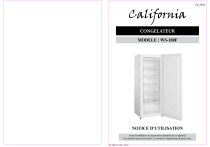 V4_2016 CONGELATEUR MODELE : WS-180F NOTICE D’UTILISATION Avant l’installation ou la première utilisation de cet appareil, Lire attentivement cette notice. La conserver soigneusement par la suite. WS-180F V3 (SEP - 2015) TABLE DES MATIERES AVERTISSEMENTS INSTRUCTIONS D’INSTALLATION MODIFICATION DU SENS D’OUVERTURE DE LA PORTE UTILISATION DE L’APPAREIL NETTOYAGE ET ENTRETIEN RESPECT DES REGLES D’HYGIENE ALIMENTAIRE RESOLUTION DES PROBLEMES CONSEILS POUR REDUIRE VOTRE CONSOMMATION D’ENERGIE CARACTERISTIQUES REPARATIONS 1 8 10 11 13 15 16 17 18 19 Veillez également à ce que les différents types d’emballage (cartons, sacs en plastique, polystyrène, bandes collantes, liens, etc.) soient hors de portée des enfants. Ces éléments comportent un risque potentiel. Avant d’utiliser l’appareil, vérifiez si le courant de votre secteur correspond à celui qui est indiqué sur la plaque signalétique. Quand vous utilisez cet appareil, veuillez suivre les consignes de sécurité suivantes. MISES EN GARDE IMPORTANTES. LIRE ATTENTIVEMENT ET CONSERVER POUR RÉFÉRENCE ULTÉRIEURE. AVERTISSEMENTS Le fabricant décline toute responsabilité en cas de blessure causée à des personnes ou de dégât matériel dus à la non-observation des instructions d’entretien et à l’usage inadéquat de l’appareil. Après avoir retiré l’emballage des différentes pièces de l’appareil, vérifiez que celui-ci se trouve en parfait état. Si vous avez des doutes à ce sujet, n’utilisez pas l’appareil et adressezvous à un vendeur ou à un technicien qualifié. 1 2 WS-180F V3 (SEP - 2015) CONSIGNES DE SÉCURITÉ Avant l’utilisation de cet appareil, lisez attentivement la notice d’utilisation. Conservez cette notice avec soin. Vérifiez premièrement si la tension indiquée sur le produit correspond à votre alimentation électrique. Avertissement : afin d’éviter tout risque d’incendie, d’électrocution ou de blessure, veillez à toujours suivre les principales consignes de sécurité suivantes quand vous utilisez un appareil électrique. Vérifiez régulièrement l’état de votre appareil. N’utilisez pas l’appareil si ce dernier est endommagé. Ne manipulez ni l’appareil, ni la prise avec les mains mouillées. N’utilisez pas l’appareil si le cordon d’alimentation ou la prise est endommagé(e). N’utilisez pas l’appareil s’il est tombé, s’il est endommagé, s’il est resté dehors ou s’il est tombé dans l’eau. Retournez l’appareil au service aprèsvente le plus proche pour qu’il soit réparé ou ajusté. Ne tirez et ne portez pas l’appareil par le cordon d’alimentation, n’utilisez pas le cordon comme poignée, ne coincez pas le fil dans la porte et ne le tirez pas le long de bords ou angles acérés. Ne placez pas l’appareil sur le cordon d’alimentation. Ne laissez en aucune façon le cordon s’enrouler ou s’emmêler. Tenez le cordon éloigné des surfaces chaudes. Ne retirez pas la prise en tirant sur le cordon. Pour la retirer, prenez-la en main et retirez-la prudemment de la prise murale. Utilisez uniquement une rallonge certifiée avec l’ampérage en vigueur dans votre pays. Des rallonges certifiées avec un ampérage inférieur risquent de surchauffer. Veillez à ce que personne ne trébuche sur le cordon ou la prise. Attention : débranchez toujours le cordon d'alimentation ou coupez le disjoncteur avant de procéder au nettoyage. Si le cordon d’alimentation est endommagé, il doit être remplacé par le fabricant, son service après-vente ou une personne de qualification similaire, afin d'éviter tout danger. Toute réparation doit être effectuée par le service aprèsvente ou des personnes de qualification similaire. Tous travaux électriques requis dans le cadre de l’installation de cet appareil doivent être effectués par un électricien qualifié ou une personne compétente. Eteignez et débranchez l’appareil lorsque vous ne l’utilisez pas. N’utilisez pas l’appareil près de matériaux inflammables. N’utilisez pas d’autres accessoires que ceux étant fournis avec l’appareil. 3 4 WS-180F V3 (SEP - 2015) Cet appareil peut être utilisé par des enfants âgés d'au moins 8 ans et par des personnes ayant des capacités physiques, sensorielles ou mentales réduites ou dénuées d’expérience ou de connaissance, s'ils (si elles) sont correctement surveillé(e)s ou si des instructions relatives à l'utilisation de l'appareil en toute sécurité leur ont été données et si les risques encourus ont été appréhendés. Les enfants ne doivent pas jouer avec l’appareil. Le nettoyage et l'entretien par l'usager ne doivent pas être effectués par des enfants sans surveillance. Ne stockez pas et n’utilisez pas d’essence ou toute autre vapeur ou liquide inflammable à proximité de cet appareil. Les fumées peuvent entraîner un incendie ou une explosion. Il convient de surveiller les enfants pour s’assurer qu’ils ne jouent pas avec l’appareil. Cet appareil est destiné à être utilisé dans des applications domestiques et analogues telles que : - des coins cuisine réservés au personnel dans des magasins, bureaux et autres environnements professionnels ; - des fermes ; - l’utilisation par les clients des hôtels, motels et autres environnements à caractère résidentiel ; - des environnements du type chambres d’hôtes. Cet appareil n’est pas un jouet. Ayez une stricte surveillance quand vous utilisez l’appareil en présence d’enfants ou d’animaux domestiques. Toutes interventions ou nettoyage sur le produit doivent se faire hors alimentation. Pour cela la fiche d’alimentation doit être déconnectée de la prise de courant. Les enfants de moins de trois ans doivent être tenus à l'écart de l'appareil à moins d'être constamment surveillés. Ne nettoyez jamais l’appareil avec des produits liquides inflammables. Les vapeurs risqueraient de provoquer un incendie ou une explosi