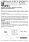 KIT DE MOULAGE EN PLÅTRE ET DE PEINTURE FR. Veuillez scanner le code QR pour afficher les instructions multilingues pour ce kit. ATTENTION! RISQUE D'ÉTOUFFEMENT - Présence de petites pièces. Ne convient pas aux enfants de moins de 3 ans. Ce produit doit être utilisé sous la surveillance d'un adulte uniquement. LA BROCHE EN PLASTIQUE POSSÈDENT UNE POINTE AIGUISÉE FONCTIONNELLE. ATTENTION! NE CONVIENT PAS AUX ENFANTS DE MOINS DE 5 ANS. CE PRODUIT DOIT ÊTRE UTILISÉ SOUS LA SURVEILLANCE D'UN ADULTE. LISEZ LES INSTRUCTIONS AVANT L'UTILISATION, SUIVEZ-LES ET CONSERVEZ-LES POUR TOUTE FUTURE RÉFÉRENCE. MESSAGES DE SECURITE POUR L'USAGE DE PLATRE EN POUDRE Trousses de moulure sont considérés comme des jouets chimiques en l'Union Européenne. Veuillez lire les précautions suivantes et instructions avant de commencer. PLATRE EN POUDRE La poudre de plâtre fournie dans ce kit est une sorte de sulfate de calcium. Le matériau est sans danger pour l'utilisation prévue. Cependant, il est recommandé de se laver les mains une fois que le projet est terminé. Si l'enfant a des allergies de peau, vous devez d'abord demander l'avis de votre médecin avant qu'il utilise ce kit. En cas d'ingestion accidentelle, consultez un médecin. Veuillez appelez votre centre de santé local ou notre distributeur indiqué sur l'emballage pour obtenir plus d'informations. Veuillez écrire ici le numéro de téléphone de votre centre de santé local pour référence rapide : ________________________. INFORMATIONS DE PREMIER SECOURS En cas d'ingestion: Rincez la bouche avec de l'eau et faites boire de l'eau fraîche. NE PAS FAIRE VOMIR. Consultez immédiatement un médecin. En cas de doute, consultez un médecin sans délai. Prenez la substance chimique et / ou le produit et le récipient avec vous. En cas de blessure, consultez toujours un médecin. En cas de contact avec les yeux, lavez abondamment l'oeil avec de l'eau, en maintenant l'œil ouvert. Consultez immédiatement un médecin. CONSEIL POUR SURVEILLANCE D'UN ADULTE • Ce jouet chimique ne convient pas aux enfants de moins de 5 ans. À utiliser sous la surveillance d'un adulte. Tenir ce jouet chimique hors de la portée des enfnats de moins de 5 ans. Veuillez lire et suivre ces instructions, les règles de sécurité et les informations de premiers secours et les gardez pour référence. L'usage incorrecte de plâtre peut causer de blessure et dommage à la santé. Seulement faites les activités indiquées dans les instructions. Comme les capacités des enfants varient, même dans les mêmes groupes d'âge, les adultes surveillants devraient exercer la discrétion sur lesquelles sont adaptées à un enfant en particulier. L'adulte surveillant devrait discuter les avertissements, informations de sécurité et les dangers possibles avec l'enfant ou enfants avant de commencer. • Le zone autour l'activité devrait être dégagé de tout obstruction et loin de stockage de nourriture. Il devrait être bien éclairé, ventilé et près d'un source de l'eau. Le lieu de travail devrait être nettoyé immédiatement après l'activité est terminé. L'attention particulaire devrait être accordé à la manipulation sécuritaire des alcalis et des acides. Une table solide avec un top résistant à la chaleur devrait être utilisé. REGLES DE SECURITE • Gardez les enfants sous l'âge spécifiée et les animaux au dehors du zone d'activité. • Rangez la trousse hors de portée des enfants. • Lavez les mains après tout activités. Nettoyez tout équipement après l'usage. • N'utiliser pas aucun équipement qui n'est pas fourni avec la trousse ou qui n'est pas recommandé dans les instructions d'usage. • Ne manger pas, boire ou fumer dans le zone d'activité. • Les poussières de plâtre peuvent irriter les yeux, le nez et la gorge. Le matériau ne doit pas être mis dans la bouche. Les poussières ou la poudre ne doivent pas être inhalées. Ne pas appliquer le plâtre sur le corps. Eviter tout contact avec les yeux. AUTRES REMARQUES SUR PLATRE EN POUDRE Avant de commencer mélangeant le plâtre, veuillez noter le suivant: La poussière de plâtre commence à durcir quand il est mélangé avec de l'eau. C'est un procès graduel dans lequel le viscosité du mélange réduira lentement jusqu'à il devient dur. Surveillez toujours la condition du plâtre en mélangeant. Effectuez le moulage quand le mélange est comme une pâte lisse. C'est environ 3-5 minutes après mélangé avec de l'eau. S'il il commence à développer dans "un bosse", il sera difficile à utiliser dans le moulage. Il est recommandé que les étapes de mélange et moulage comme décrit sur l'arrière soient terminé en 5-10 minutes. Se débarrassez du plâtre qui reste correctement. Ne pas verser le plâtre dans l'évier ou baignoire car il peut obstruer le drain. Nettoyez les ustensiles utilisés pour le mélange du plâtre sous l'eau courante. CONTENU Pièce A : poudre de plâtre x 1, Pièce B : Moule x 1, Pièce C: bande de peinture x 1, Pièce D : Épingles x 2, Pièce E: pinceau x 1, Pièce F : Aimant en caoutchouc x 1. INSTRUCTIONS 41-04813/1/QR 1. MÉLANGER LE PLÂTRE Remarque : Avant de commencer, garde à l'esprit qu'il faudra mélanger le plâtre pendant plus de 3 minutes, car il commence à durcir dès que l'eau est ajoutée. Prépare un bol avec une surface intérieure lisse, un bâton pour mélanger et environ 90-100ml (3.1-3.5 fluide oz) d'eau. Coupe le sac de poudre de plâtre pour l'ouvrir (120g / 4.2 oz) et verse la poudre dans le bol. Commence par ajouter de l'eau lentement, n'ajoute pas toute l'eau à la fois car cela pourrait rendre le mélange de plâtre trop liquide pour le moulage. Au contraire, remue doucement le mélange alors que tu ajoutes lentement l'eau et surveille la consistance de la pâte de plâtre. Dans des conditions normales, un sac de plâtre deviendra une pâte lisse après avoir ajouté environ 90-100ml (3.1-3.5 fluide oz) d'eau. N'oublie 