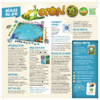 RÈG L E S DU JEU 2 3 COMMENT JOUER ? 2 3 À ton tour, déplace une de tes grenouilles sur une case adjacente. 1 2 3 INTRODUCTION Dans CRÔA!, tu joues une Colonie de grenouilles qui essaye de prendre le contrôle de la mare. Au fur et à mesure du déplacement de tes grenouilles, la mare se révèle et te donne des ressources. Utilise-les au mieux pour faire des bébés grâce aux Mâles et agrandir ta Colonie, te déplacer plus rapidement à l’aide des Moustiques et des Nénuphars ou encore te reposer grâce aux Roseaux. Mais gare aux Brochets et aux grenouilles adverses qui ne te feront pas de cadeaux ! CONTENU • 64 (16x4) tuiles • 1 module optionnel de 55 cartes • 1 plateau recto verso Pour chacune des 4 couleurs : 1 grenouille Reine • 6 grenouilles Servantes • 6 pions Mâles BUT DU JEU Élimine les autres Colonies pour être la dernière Reine en jeu. 3 2 MISE EN PLACE 1 Mets le plateau au milieu de la table, côté 2-4 ou 3 en fonction du nombre de joueurs et de joueuses. 2 Sépare les tuiles en 4 piles en fonction de leur dos. Mélange chaque pile séparément et place chacune, face cachée, à côté de la zone de la mare correspondante. 3 Choisis une couleur et prends ta grenouille Reine et tes 6 Servantes, ainsi que les 6 pions Mâles de ta couleur. Place ta Reine et 2 de ses Servantes dans un angle de la mare. À deux colonies, place les Reines sur les angles indiquant 2-4 . Le joueur ou la joueuse qui saute le plus loin commence. Note : le terme ”grenouille” désigne une Reine ou une Servante. Le terme ”Colonie”désigne un joueur ou une joueuse. Note : si la case n’a pas de tuile, pioches-en une de la couleur de la zone correspondante et place-la face visible sous ta grenouille. Applique l’effet de la tuile d’arrivée. Le jeu se joue dans le sens horaire. Lorsqu’un effet indique “C’est à la Colonie suivante de jouer“, il s’agit de la Colonie à ta gauche. RÈGLES DE LA MARE • Il ne peut y avoir qu’une seule grenouille par tuile. Tu ne peux pas déplacer une de tes grenouilles sur une tuile déjà occupée par une de tes grenouilles (sauf sur un Rondin, voir Effets des tuiles). Si l’une de tes Servantes se trouve sur la même tuile que ta Reine, tu dois obligatoirement déplacer une de ces 2 grenouilles à ton tour de jeu. Si tu arrives sur une tuile occupée par 1 ou plusieurs grenouilles adverses, retire-les de la mare avant d’appliquer l’effet de la tuile. Si tu arrives sur une tuile occupée par une Reine adverse, la Colonie adverse est éliminée en même temps que sa Reine ! Retire toutes ses grenouilles de la mare et si tu as moins de 6 Servantes dans la mare, tu en gagnes une. Pose-la sur la même tuile que ta Reine. • • • • Si tu déplaces ta Reine sur un Brochet, ta Colonie est immédiatement éliminée. Retire toutes tes grenouilles de la mare. FIN DE PARTIE Dès qu’il reste 1 seule Reine dans la mare, c’est la fin de la partie ! Le joueur ou la joueuse qui joue cette Colonie gagne la partie. MODULE CARTES (optionnel) Si tu veux t’amuser davantage, et que tout le monde est d’accord, vous pouvez jouer avec les cartes. • Au début de la partie, distribue au hasard 3 cartes à chaque Colonie. • Au début de ton tour de jeu, pioche autant de cartes qu’il te faut pour avoir 3 cartes en main. • Tu ne peux jouer qu’1 seule carte pendant ton tour, au moment indiqué en haut de la carte : À jouer à ton tour x(n’importe quand pendant ton tour de jeu) À jouer au début de ton tour À jouer à la fin de ton tour À jouer à n’importe quel moment • Tu peux jouer 1 ou plusieurs cartes orange ( ) pendant le tour d’une Colonie adverse. À jouer à n’importe quel moment COUP DE TONNERRE ! Annule l’effet d’un Nénuphar lorsqu ’une grenouille arrive dessus. Elle reste sur cette tuile. C’est à la Colon ie suivante de jouer. EFFETS DES TUILES Chaque zone de la mare est constituée du même nombre de tuiles. Lorsque ta grenouille arrive sur une tuile, applique son effet : LE NÉNUPHAR (4 par zone de la mare) Ta grenouille doit rebondir sur une tuile adjacente de ton choix. Applique l’effet de la nouvelle tuile. Tu ne peux pas revenir sur la tuile que tu viens de quitter, sauf si toutes les tuiles adjacentes sont déjà occupées par tes grenouilles. Tes grenouilles ne peuvent pas rester sur un Nénuphar (sauf si un effet de carte l’indique). LE MOUSTIQUE (2 par zone de la mare) Tu peux déplacer immédiatement 1 autre de tes grenouilles en appliquant les effets de la tuile sur laquelle elle arrive. Si tu ne peux pas ou que tu décides de ne pas déplacer d’autre grenouille, c’est à la Colonie suivante de jouer. LA VASE (1 par zone de la mare) Ta grenouille est enlisée. Elle ne pourra pas être déplacée au tour suivant. Mets ta grenouille sur le dos. Tu la redresseras à la fin de ton prochain tour. C’est à la Colonie suivante de jouer. LE BROCHET (1 par zone de la mare) Ta grenouille est mangée. Retirela de la mare. S’il s’agit de ta Reine, tu as perdu. C’est à la Colonie suivante de jouer. LES ROSEAUX (4 par zone de la mare) Rien ne se passe, c’est à la Colonie suivante de jouer. LE RONDIN (1 par zone de la mare) Il ne se passe rien si ta Servante arrive sur un Rondin non-occupé ou occupé par une Servante même adverse. Il peut y avoir jusqu’à 2 Servantes sur un même Rondin. • Si une troisième Servante arrive sur le Rondin, elle retire de la mare la Servante de son choix. • Une Reine qui arrive sur un Rondin retire de la mare toutes les Servantes qui s’y trouvent (y compris celles de sa propre Colonie). • Une Reine est toujours retirée de la mare par une grenouille adverse qui arrive sur le Rondin où elle se trouve. C’est à la Colonie suivante de jouer. LES MÂLES (3 différents par zone de la mare. Tous les Mâles existent en 2 exemplaires dans la mare). Lorsque ta Reine arrive sur une tuile Mâle dont tu possèdes encore le pion et qu’il te res