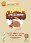 PAS LE TEMPS DE LIRE ? JOUEZ DANS 3 MIN AVEC LES RÈGLES EN VIDÉO ICI Automne 10min 1 10+ Un défi solo de 9 cartes créé par Mark Tuck Règles multijoueurs incluses (requiert un exemplaire du jeu par personne) Parcourez la forêt à la recherche de nourriture sauvage. Ramassez-en autant que possible en superposant des zones de même type ! Matériel 1 pion Chipie la souris 18 cartes Forêt Il y a 3 types de zones différentes sur les cartes : Fourrés , Feuilles mortes et Litière végétale . Chaque carte est divisée en 6 zones dont 5 avec de la nourriture à récolter. Vous trouverez des : • Mûres poussant dans les fourrés, • Châtaignes tombées sur les feuilles mortes, • Champignons émergeant de la litière végétale. La 6e zone est divisée en 2 zones de types différents ( , , ) et peut être considérée comme l’un ou l’autre. Cette zone n’a pas de nourriture. Sur le verso des cartes figurent des « Recettes » qui ne sont pas utilisées dans une partie Standard (voir « Le défi des Recettes »). 15 dés de Récoltes (verts, jaunes et marron) Il y a 5 dés de chaque couleur de zone/nourriture. Les points sur les dés représentent la quantité de nourriture récoltée dans cette zone. Chaque dé a ». également une face « Mise en place Placez les 15 dés et le pion Chipie la souris à portée de main. Mélangez les cartes face Recette visible et séparezles en 2 paquets de 9 cartes. Mettez un paquet de côté, il servira pour une prochaine partie. Placez le paquet restant face cachée (face Recette visible) à portée de main pour constituer la pioche. Piochez la première carte et placez-la face visible au centre de l’espace de jeu. C’est le départ de votre Forêt. Piochez 2 cartes pour former votre main de départ. À chaque tour vous devrez : 1. Jouer une carte 2. Poser des dés 3. Piocher une nouvelle carte. 1. Jouer une carte Placez une carte de votre main dans votre Forêt. Vous êtes libre de l’orienter comme bon vous semble (à 90 ou à 180 degrés) avant de la poser. Vous devez faire en sorte qu’au moins une zone de cette carte superpose une zone de votre Forêt. 2. Poser des dés A. Pour chaque zone avec de la nourriture qui superpose une zone du même type (avec ou sans nourriture) : • S’il n’y a pas de dé sur la zone superposée, placez-en un sur la zone de la carte nouvellemment posée, avec la face « 1 » vers le haut. La couleur du dé doit correspondre à la couleur de la zone. S’il ne vous reste plus de dés de ce type dans votre réserve, vous n’en placez pas. • S’il y a déjà un dé du même type sur la zone superposée, déplacez-le sur la zone de la carte nouvellemment posée en le faisant pivoter pour augmenter sa valeur (1 à 3, 3 à 6, 6 à 10, 10 à ). B. Pour chaque zone sans nourriture qui superpose une zone du même type : • S’il n’y a pas de dé sur la zone superposée, ne placez pas de dé. • S’il y a déjà un dé du même type sur la zone superposée, déplacez-le sur la zone de la carte nouvellement posée sans changer sa valeur. C. Pour chaque zone (avec ou sans nourriture) de la carte nouvellement posée qui superpose une zone de type différent : • S’il n’y a pas de dé sur la zone superposée, placez». en un sur sa face « • S’il y a un dé sur la zone superposée, retirez-le et remettez-le dans votre réserve, puis placez-en un ». sur sa face « La couleur de ce dé doit correspondre à la couleur de la zone nouvellement posée. S’il ne vous reste plus de dés de ce type, vous pouvez placer le pion Chipie la souris (s’il est disponible) à la place. Sinon, vous ne pouvez pas placer la carte dans cette position. Une zone avec un dé sur sa face « » ne pourra plus être superposée (sauf en utilisant Chipie la souris - voir ci-dessous). 3. Piocher une nouvelle carte Piochez une nouvelle carte (s’il en reste) pour compléter votre main à 2 cartes. Chipie la souris Une fois par partie, il vous est permis de poser une carte dont une zone superpose un dé sur sa face » (la zone qui superpose doit correspondre à « celle du dé). Retirez alors le dé et remettez-le dans votre réserve. Posez à la place le pion Chipie la souris sur la zone de la carte nouvellement posée. Cette zone ne pourra plus être superposée. Exemples de tours Départ de votre Forêt. Tour 1 : Un dé jaune (pour la Châtaigne), un dé marron (pour le Champignon) et un dé vert (pour la Mûre) sont placés. Aucun dé n’est placé sur la zone divisée. Tour 2 : La valeur de chaque dé augmente. Ils sont pivotés sur leur face « 3 » et un nouveau dé jaune est placé. Tour 3 : Le dé vert passe à « 6 » et un nouveau dé marron est placé. Le dé jaune superposé est déplacé sur la zone divisé sans que sa valeur n’augmente. Un dé jaune est placé » sur la zone superposant une zone sur sa face « qui ne lui correspond pas. Fin de la partie La partie prend fin après avoir placé la neuvième et dernière carte et placé/pivoté les dés en conséquence. Décompte des points Additionnez toutes les valeurs sur les dés de votre Forêt pour savoir combien de nourriture vous avez récolté. Soustrayez 1 pour chaque dé sur une zone divisée. » Soustrayez 2 pour chaque dé sur sa face « (votre récolte a été grignotée !). Soustrayez 5 si Chipie la souris est dans votre Forêt. Quel est le fruit de votre récolte ? < 30 Vous foncez droit dans la Mûre... 30–34 Vous Forêt mieux la prochaine fois. 35–39 Appuyez sur le Champignon. 40–44 Vous Châtaignez votre but ! 45–49 La victoire vous Souris ! 50+ Bravo ! Vous êtes im-Baie-ttable !!! Le défi des Recettes Sur le verso des cartes figurent des « Recettes », qui font office de conditions de victoire ou de défaite. Mélangez les 18 cartes. Mettez-en 2 de côté, face Recette visible. Vous trouverez sur chacune d’elle un objectif qui vous octroiera un bonus ou un multiplicateur de points en fin de partie si vous le remplissez. R