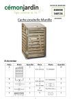 NOTICE DE MONTAGE 830000 340536 Cache poubelle Manille 300202B001 Kit de montage : Pièce A Photo Quantité 2 Pièce 1 Photo Quantité 47 3,5 x 35 mm B 1 2 6 4,0 x 60 mm C 2 3 2 70 x 30 mm D 1 4 1 44 cm E 1 5 1 1 F 1 6 1 G 1 7 1 17 x 115 mm 8 2 80 x 60 mm 9 1 4,0 x 20 mm Conseils d’utilisation : POSITIONNER LE PRODUIT DE MANIERE STABLE SUR UN SOL PLAT. NOTICE À CONSERVER Plan de montage : À MONTER SOI-MÊME 2 3 ">