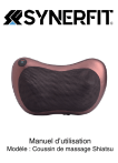 Manuel d’utilisation Modèle : Coussin de massage Shiatsu À LIRE AVANT UTILISATION CONSIGNES Notre société se réserve le droit de modifier le contenu du présent mode d’emploi sans préavis. La notice présente correspond au modèle vendu à la période où elle a été éditée. Il se peut qu’elle soit modifiée et mise à jour au fil du temps. Avant la première utilisation, nous vous prions de bien vouloir charger le produit durant deux heures. CARACTÉRISTIQUES Alimentation : DC12V Puissance : 24W Nombre d'intensités : 3 Noeuds de massage : 4 Chaleur régénératrice à 44°Celsius Arrêt automatique : 15min Utilisation polyvalente : Cou / Epaule / Abdomen / Taille / Lombaires / Jambes / Pieds Composition : Cuir synthétique / tissu respirant INSTRUCTIONS Veuillez respecter les instructions ci-dessous. Si celles-ci ne sont pas respectées et que votre produit est endommagé, nous ne pourrons être tenus pour responsables. - Nettoyez le produit régulièrement avec un chiffon humide (si nécessaire, vous pouvez appliquer un peu de nettoyant, mais ne pas appliquer de solvants chimiques) - Ne pas utiliser d'eau directement sur le produit - Veuillez ne pas dépasser 15 minutes à chaque utilisation - Veuillez ne pas utiliser le produit dans l'heure qui suit le dîner ON/OFF Protection Maille Massage Coussin Massage Chargeur Télécommande Prise secteur ">