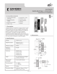 CX-ED2079 Gâche électrique « universelle » Instructions d’installation Cet ensemble comprend : UL 1034 UL 294 1 - connecteur d’alimentation à 4 broches 2 - vis à bois #10 x 1 1/4 po 1 - plaques ESP1B, ESP3B et ESP4B 2 - supports de fixation 4 - capuchons de connexion 5 - vis M5 x 12 mm 2 - vis #10-32 x 1/2 po 2 - entretoises 1 - Varistance 1. Description La gâche électrique CX-ED2079 de catégorie ANSI 2 à profil bas de Camden pour serrures complètes cylindriques offre la meilleure qualité et le meilleur rendement en matière de gâches et comprend 3 plaques en acier inoxydable. La conception « universelle » de la gâche permet une souplesse d’utilisation inégalée, avec le choix de tension sur place, le fonctionnement à sécurité intégrée ou non intégrée et la mise au point mécanique du corps de la gâche. 3. Dimensions 2. Spécifications 1 1/4 po (32 mm) 5/8 po (16 mm) Tension 12/24 V c.a./c.c. Appel de courant 300 mA @ 12 V c.c. 150 mA @ 24 V c.c. Résistance statique 1000 Lb Résistance dynamique 50 pi/lb Endurance 700 000 cycles (testé en usine) 4 1/8 po (104 mm) 1 5/8 po (42 mm) 4 7/8 po (123 mm) 3/4 po (19 mm) 250 000 cycles (vérifié par UL)) 1 7/8 po (47 mm) Mode Sécurité intégrée/non intégrée au choix sur le terrain Mise au point mécanique Corps de gâche/plaque Fonctionnement c.a. - alarme c.c. - silencieux Service Continu Dimensions (Body) 3 3/8 po H x 1 7/8 po L x 1 7/32 po P (86 mm x 47 mm x 31 mm) 1 7/32 po (31 mm) 3 3/8 po (86 mm) 1 7/32 po (31 mm) 1 7/32 po (31 mm) 1/2 po (12 mm) 1 1/4 po (32 mm) 1/8 po (3 mm) Page 1 de 3 CX-ED2079 Gâche électrique « universelle » 4. Installation 1. Préparer le jambage de porte selon le schéma approprié. 2. Installer les supports de fixation au jambage à l’aider des vis M5x12 et des écrous de métal. Ne pas serrer. 3. Les entretoises sont utilisées pour assurer un assemblage encastré final de la plaque dans le jambage. Ajouter une entretoise ou plus entre le jambage et le support de fixation lorsque la plaque dépasse le jambage. Lorsque la plaque est insérée dans le jambage, les entretoises doivent être ajoutées entre le support Support de fixation de fixation et le support à lèvre. S’assurer que le trou de dégagement de l’entretoise soit aligné avec le trou du support de fixation. 4. Brancher les fils du côté de la basse tension du transformateur au fils (noirs) de la gâche. 5. Installer la gâche électrique au jambage en la fixant à l’aide de vis # 10-32 et de rondelles de blocage. 6. Visser les vis M5x12 en maintenant les supports de fixation sur le jambage. Entretoise Entretoise 4 7/8 po (124 mm) 3 1/2 po (89 mm) 3 3/8 po (86 mm) Entretoise (option) 4 1/8 po (105 mm) 1 7/32 po (31 mm) Vis à tête plate M5x12 (2 mcx) ESP1B + ESP2B 6 7/8 po (173 mm) Vis M 5x1 5 11/16 po (144 mm) 2 3 3/8 po (86 mm) e bag Jam 6 1/8 po (155 mm) 1 7/32 po (31 mm) Axe vertical ESP3B Note : Les produits sont destinés à être installés selon le schéma de câblage de l’installation, les dessins d’assemblage mécanique fournis avec le produit, l’autorité régionale, le code national de l’électricité et le NFPA 70. Il faut consulter l’autorité régionale compétente concernant l’utilisation de possible quincaillerie antipanique afin de permettre la sortie d’urgence d’une zone sécurisée lors d’une installation avec une serrure à fermeture en cas de panne de courant. La gâche électrique doit être installée de façon et à un endroit où elle n’empêchera pas le fonctionnement d’une sortie d’urgence ou de quincaillerie antipanique montée sur la porte. Page 2 de 3 7 7/8 po (200 mm) 6 3/8 po (168 mm) 3 3/8 po (86 mm) 7 3/8 po (187 mm) 1 7/32 po (31 mm) 1 3/8 po (36 mm) ESP4B CX-ED2079 Gâche électrique « universelle » 5. Connexions 6. Fonctionnement ALIMENTATION 12 V c.c. Rouge/noir : +12 V Bleu/vert : 24 V c.c. Rouge : Noir/bleu : Vert : Terre Comment passer de sécurité intégrée à sécurité non intégrée et vice versa. +24 V Terre (1). Desserrer la vis selon le schéma du produit ci-dessous. (2). Tourner la plaque de 180o et glisser la plaque jusqu’à ce qu’elle retrouve bien sa place. Une varistance est fournie pour protéger et empêcher la gâche des variations brusques. Brancher la varistance entre les fils d’entrée. Note : Les gâches de porte doivent être alimentées par une sortie limitant l’alimentation de classe 2 à partir d’un panneau de contrôle ou d’un bloc d’alimentation homologué UL selon les normes UL portant sur les alarmes antivol et le contrôle d’accès. (3). Serrer la vis. Alimentation 12 V Rouge Noir Bleu Vert (+12 V) Varistance (-) En changement Sécurité intégrée 24 V (+24 V) Rouge Noir Bleu Vert Varistance (-) Noir Rouge Bleu Vert Alimentation Sécurité non intégrée 7. Plaques 5⁄8 po COMPRISES DANS L’ENSEMBLE (16 mm) 5⁄8 po (16 mm) 5⁄8 po (16 mm) (32 mm) 4 7⁄8 po 5⁄8 po 6 1⁄8 po (173 mm) 3 3⁄8 po (189 mm) 7 7⁄8 po 3 3⁄8 po (200 mm) (85 mm) 4 1⁄8 po ¾ po (19 mm) Claviers (57 mm) (44 mm) ESP3B - Porte métallique creuse Gâches ESP4B - Porte de bois Serrures électromagnétiques DÉCOUVREZ LES MEILLEURS PRODUITS DE VERROUILLAGE ET D’ACTIVATION DE PORTES! Page 3 de 3 (32 mm) (85 mm) 2 ¼ po 1 ¾ po 1 ¼ po 3 3⁄8 po (104 mm) (123 mm) Boutons-poussoirs (16 mm) 7 ½ po (85 mm) ESP1B -ANSI carrée PLAQUE SUPPLÉMENTAIRE (32 mm) 1 ¼ po 6 7⁄8 po (104 mm) (36 mm) 1 ¼ po (154 mm) 4 1⁄8 po 1 3⁄8 po Interrupteurs à clé www.camdencontrols.com Sans frais : 1.877.226.3369 4 7⁄8 po 3 3⁄8 po (85 mm) (123 mm) ¾ po (19 mm) ESP2B - ANSI ronde Relais et minuteries Contrôle d’accès Fichier : CX-ED2079 Designer Installation Instructions.indd R6 Révision : 01/06/2018 Pièce no : 40-82B187F ">
