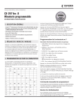 Serrure s él ect r i fi ées , re la is e t m inu te r ie s CX-247 Ver. 8 Minuterie programmable INSTRUCTIONS D'INSTALLATION 1. DESCRIPTION GÉNÉRALE Les jours, heures et minutes doivent être réglés pour chaque moment d'ACTIVATION et de DÉSACTIVATION. • Jusqu'à 17 événements d'activation et de désactivation par jour • Peut être programmé pour des journées individuelles et/ou 8 différents groupes de semaine • Période de commutation minimale d'une minute • Écran ACL facile à lire • Bouton de commande manuelle de surpassement • Batterie de secours Appuyer sur le bouton MINUTERIE une fois pour régler le premier moment d'ACTIVATION - il sera écrit « on » et le numéro « 1 » apparaîtra à gauche de l'écran ACL. Ceci indique qu'il est possible d'entrer le premier moment d'ACTIVATION. • Relais « Premier arrivé » en option Programmation de la minuterie no 1 2. RÉGLAGE DE L'HEURE DE L'HORLOGE Description fonctionnelle des boutons du panneau Appuyer sur le bouton HORLOGE en le maintenant. Appuyer ensuite sur le bouton JOUR pour choisir le jour approprié, puis sur le bouton HEURE pour choisir l'heure appropriée et enfin sur le bouton MIN pour choisir les minutes appropriées. Le temps sera réglé après avoir libéré le bouton MIN. Les secondes débuteront à 00. Il est possible, en maintenant ou en appuyant à répétition sur le bouton approprié, de faire avancer les jours, les heures et les minutes. 3. PROGRAMMATION DES TEMPS DE COMMUTATION La commutation automatique permet 15 activations/ désactivations. À l'aide des blocs de jours disponibles, il est possible de sauvegarder la capacité du programme. Les blocs de jours sont : 1 LU 2 LU 3 MA ME JE VE SA VE 7 SA 8 MA ME JE MA ME 12 LU MA ME 13 14 15 LU 5. HEURE: Pour régler l'heure 6. MIN : Pour régler les minutes 7. Réinitialisation du réglage de minuterie 8. DEL : Pour indiquer l'état d'ACTIVATION/DÉSACTIVATION Appuyer sur le bouton MINUTERIE pour valider cette entrée. Répéter les étapes précédentes pour les 7 réglages d'ACTIVATION/DÉSACTIVATION au besoin. Après avoir réglé les réglages d'ACTIVATION/DÉSACTIVATION requis, appuyer sur le bouton HORLOGE pour rétablir l'affichage à l'horloge. Commande manuelle de surpassement DI JE VE SA JE VE SA Bouton de réinitialisation ME MA 4. JOUR : Pour régler le jour de la semaine Il est possible de choisir l'ACTIVATION manuelle ou la DÉSACTIVATION manuelle, cependant, les réglages de programmation fonctionnent seulement lorsque l'unité est en mode Auto. SA LU 3. HORLOGE : Pour régler le jour et l'heure courants DI VE 10 11 2. MANUEL : Pour choisir « ACTIVATION, AUTO ou DÉSACTIVATION » À noter qu'il est possible de vérifier les réglages programmés en appuyant sur le bouton MINUTERIE à répétition - chaque réglage apparaîtra à l'écran. JE 6 LU 1. MINUTERIE : Révision des programmes et réglage des programmes La minuterie est maintenant prête à fonctionner. ME 5 9 DI MA 4 Appuyer sur le bouton JOUR pour choisir le jour requis ou le bloc de jours, puis régler l'heure et les minutes à l'aide des boutons HEURE et MIN. . VE JE SA Pour réinitialiser l'unité, incluant l'heure et les réglages d'ACTIVATION/DÉSACTIVATION programmés, appuyer sur le bouton RÉINITIALISER à l'aide d'un stylo à bille. Page 1 de 2 CX-247 Ver. 6 Minuterie Programmable I NS TRUCTIONS D'INS TA L L AT ION MISE EN GARDE! Cette minuterie électronique porte une inscription de charge maximale sur l'étiquette de cote énergétique et celle-ci ne doit en aucun cas être dépassée. Lire la section sur les IMPORTANTES MESURES DE SÉCURITÉ. Importantes Mesures De Sécurité • Ne pas utiliser avec une rallonge électrique. • Ne pas brancher cette minuterie dans une autre minuterie. • Ne pas brancher un dispositif à mouvement mécanique directement sur la minuterie. • Ne pas dépasser la charge maximale (mentionnée sur l'étiquette de cote énergétique du produit). • Les radiateurs et radiateurs soufflants avec éléments exposés ne doivent pas être laissés sans surveillance, et il est recommandé que ces types d'appareils ne soient pas branchés à des minuteries. • Ne pas insérer d'aiguille ni d'autre objet de métal dans la sortie principale. • Éviter l'humidité, les températures extrêmes, les chocs et la vibration. • L'utiliser à l'intérieur seulement. Température ambiante recommandée de -10oC (14oF) à 40oC (104oF). • Ne pas ouvrir la minuterie. Toute réparation doit être effectuée uniquement par un technicien approuvé par Camden. RÉINITIALISER OUVERT AUTO FERMÉ HEURE MIN MANUEL Relais « Premier arrivé » Le relais « Premier arrivé » est une option qui offre plus de sécurité et maintient la porte verrouillée lors de congés, ou si le personnel ne peut pas arriver sur les lieux (jour de tempête par exemple). Le CX0247, lorsque réglé en mode auto, déverrouille la porte à l'heure préprogrammée et verrouille la porte à nouveau à l'heure de fin préprogrammée (par exemple, déverrouille le lundi à 8 h et verrouille lundi à 17 h). Mais si lundi est un jour de congé, la porte devrait rester verrouillée, à moins qu'il y ait du personnel sur les lieux et que la porte doive rester déverrouillée. Avec l'option « Premier arrivé », l'horaire préprogrammé ne s'enclenche pas tant qu'une personne entre sur les lieux et active l'interrupteur/bouton-poussoir. Le CX-247 suit maintenant son horaire préprogrammé. Si personne n'entre, la porte reste verrouillée. Si une personne entre et n'active pas l'interrupteur/bouton-poussoir, la porte reste alors verrouillée et l'horaire n'est pas suivi. 4. GARANTIE NOTE : En cas d'activation d'un dispositif électromécanique, placer la varistance fournie en parallèle avec les sorties de minuterie comme illustrée. Le relais « Premier arrivé » comprend déjà une varistance, il n'est donc PAS nécessaire d'en installer une en parallèle avec les sortie