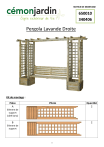 NOTICE DE MONTAGE 650010 340406 Pergola Lavande Droite Kit de montage : Pièce A Photo Quantité 2 Elément de support (côté banc) B 2 Elément de support 1 C 4 Elément de jardinière D 2 Treillage E 1 Dossier du banc F 1 Assise du banc G 4 Rallonge de l’arche H 2 Arche I 9 Traverse J Quincaillerie 2 NOTICE À CONSERVER Plan de montage : À MONTER SOI-MÊME 3 4 ">