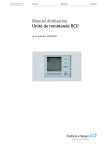 BA02461C/90/FR/02.25-00 8030178/1TBI/V3-1/2025-09 Products Solutions Manuel d'utilisation Unité de commande BCU pour gamme GMS800 Services Unité de commande BCU Produit décrit Unité de commande BCU Fabricant Endress+Hauser SICK GmbH+Co. KG Bergener Ring 27 01458 Ottendorf-Okrilla Deutschland Informations légales Ce document est protégé par des droits d'auteur. Die dadurch begründeten Rechte bleiben bei der Firma Endress+Hauser SICK GmbH+Co. KG. La reproduction complète ou partielle de ce document n'est autorisée que dans les limites des dispositions légales de la loi sur les droits d'auteur. Toute modification, résumé ou traduction de ce document est interdit sans autorisation expresse écrite de la société Endress+Hauser SICK GmbH+Co. KG. Les marques citées dans ce document sont la propriété de leurs propriétaires respectifs. © Endress+Hauser SICK GmbH+Co. KG. Tous droits réservés. Document original Ce document est un document original de Endress+Hauser SICK GmbH+Co. KG. 2 MANUEL D'UTILISATION 8030178/1TBI/V3-1/2025-09 Endress+Hauser Unité de commande BCU Contenu Contenu 1 2 3 À propos de ce document..................................................................... 8 1.1 Symboles d'avertissement............................................................................. 8 1.2 1.3 Niveaux d'avertissement / Termes de signalisation.................................... Symboles des informations........................................................................... 8 8 Informations importantes..................................................................... 9 2.1 2.2 2.3 9 9 9 Description du produit........................................................................... 10 3.1 3.2 4 4.3 4.4 4.5 4.6 4.7 5.4 Endress+Hauser 10 10 Procédure de mise sous tension................................................................... Éléments de commande et d'affichage........................................................ 4.2.1 DELs............................................................................................... 4.2.2 Touches de fonction...................................................................... 4.2.3 Messages possibles dans la ligne d'états................................... Contrôle de l'état du fonctionnement (contrôle visuel)................................ 4.3.1 Caractéristiques d'un fonctionnement fiable.............................. 4.3.2 Caractéristiques d'un fonctionnement incertain......................... Mise hors service........................................................................................... Démarrage de l'utilisation.............................................................................. 4.5.1 Comment accéder à l'affichage des mesures............................. 4.5.2 Comment accéder au Menu principal.......................................... 4.5.3 Comment choisir une fonction..................................................... 4.5.4 Pour repasser sur l'affichage mesures........................................ 4.5.5 Langue........................................................................................... 4.5.6 Niveau utilisateur (Login).............................................................. Arborescence des menus des fonctions de base........................................ Arborescence "Utilisateur autorisé"............................................................... 11 11 11 12 12 14 14 14 14 15 15 15 16 16 16 16 17 19 Fonctions de maintenance................................................................... 21 5.1 5.2 5.3 6 Remarques fondamentales........................................................................... Fonctions essentielles................................................................................... Utilisation (généralités)......................................................................... 11 4.1 4.2 5 Éclairage écran............................................................................................... Autonomie de l'horloge interne...................................................................... Informations/documentations supplémentaires......................................... Mode maintenance........................................................................................ Sauvegarder/récupérer les données............................................................ Test E/S........................................................................................................... 5.3.1 But des tests des E/S................................................................... 5.3.2 Informations de sécurité sur le test des E/S............................... 5.3.3 Test des sorties analogiques........................................................ 5.3.4 Tester les sorties binaires............................................................. 5.3.5 Test des entrées analogiques....................................................... 5.3.6 Test des entrées binaires.............................................................. Redémarrage.................................................................................................. 21 21 22 23 23 23 24 24 25 25 Fonctions de calibrages........................................................................ 26 MANUEL D'UTILISATION 8030178/1TBI/V3-1/2025-09 3 Contenu Unité de commande BCU 6.1 6.2 6.3 6.4 6.5 7 7.4 MANUEL D'UTILISATION 8030178/1TBI/V3-1/2025-09 26 27 27 28 28 29 31 32 34 35 35 35 36 36 37 37 37 38 39 39 40 41 42 42 42 42 42 43 43 44 44 45 45 45 46 Fonctions de diagnostic......................................................................... 47 7.1 7.2 7.3 4 Calibrage de composants individuels .......................................................... 6.1.1 Conditions pour faire un calibrage manuel................................. 6.1.2 Démarrer la procédure de calibrage............................................ 6.1.3 Exécution de l