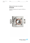 BA01600C/14/FR/06.25-00 71721082 2025-07-24 Products Solutions Manuel de mise en service OUA260 Chambre de passage pour les capteurs OUSAFxx et OUSTF10 Services OUA260 Sommaire Sommaire 1 Informations relatives au document . . . . . . . . . . . . . . . . . . . . . . . . . . 4 1.1 1.2 1.3 Informations relatives à la sécurité . . . . . . . . . . 4 Symboles utilisés . . . . . . . . . . . . . . . . . . . . . . . 4 Symboles sur l'appareil . . . . . . . . . . . . . . . . . . . 4 2 Consignes de sécurité de base . . . . . . . 5 2.1 2.2 2.3 2.4 2.5 Exigences imposées au personnel . . . . . . . . . . . 5 Utilisation conforme . . . . . . . . . . . . . . . . . . . . 5 Sécurité sur le lieu de travail . . . . . . . . . . . . . . . 5 Sécurité de fonctionnement . . . . . . . . . . . . . . . 5 Sécurité du produit . . . . . . . . . . . . . . . . . . . . . . 6 3 Réception des marchandises et identification du produit . . . . . . . . . . . . 7 3.1 3.2 3.3 Réception des marchandises . . . . . . . . . . . . . . . 7 Identification du produit . . . . . . . . . . . . . . . . . . 7 Contenu de la livraison . . . . . . . . . . . . . . . . . . . 8 4 Montage . . . . . . . . . . . . . . . . . . . . . . . . . . . 9 4.1 4.2 4.3 4.4 Exigences liées au montage . . . . . . . . . . . . . . . 9 Dimensions . . . . . . . . . . . . . . . . . . . . . . . . . . 10 Conditions de montage . . . . . . . . . . . . . . . . . 11 Contrôle du montage . . . . . . . . . . . . . . . . . . . 12 5 Maintenance . . . . . . . . . . . . . . . . . . . . . . 13 5.1 5.2 Instructions de maintenance . . . . . . . . . . . . . 13 Remplacement de la fenêtre du capteur et des joints . . . . . . . . . . . . . . . . . . . . . . . . . . . . . . . 13 6 Réparation . . . . . . . . . . . . . . . . . . . . . . . . 16 6.1 6.2 6.3 Pièces de rechange . . . . . . . . . . . . . . . . . . . . . 16 Retour de matériel . . . . . . . . . . . . . . . . . . . . . 18 Mise au rebut . . . . . . . . . . . . . . . . . . . . . . . . 18 7 Accessoires . . . . . . . . . . . . . . . . . . . . . . . 19 8 Caractéristiques techniques . . . . . . . . 20 8.1 8.2 Process . . . . . . . . . . . . . . . . . . . . . . . . . . . . . 20 Construction mécanique . . . . . . . . . . . . . . . . . 20 Index . . . . . . . . . . . . . . . . . . . . . . . . . . . . . . . . . . 21 Endress+Hauser 3 Informations relatives au document OUA260 1 Informations relatives au document 1.1 Informations relatives à la sécurité Structure de l'information Signification LDANGER Cette information attire l'attention sur une situation dangereuse. Si cette situation n'est pas évitée, cela aura pour conséquence des blessures graves pouvant être mortelles. Cause (/conséquences) Conséquences en cas de nonrespect ‣ Mesure corrective LAVERTISSEMENT Cause (/conséquences) Conséquences en cas de nonrespect ‣ Mesure corrective LATTENTION Cause (/conséquences) Conséquences en cas de nonrespect ‣ Mesure corrective AVIS Cause / Situation Conséquences en cas de nonrespect ‣ Mesure / Remarque 1.2 Cette information attire l'attention sur une situation dangereuse. Si cette situation n'est pas évitée, cela pourra avoir pour conséquence des blessures graves pouvant être mortelles. Cette information attire l'attention sur une situation dangereuse. Si cette situation n'est pas évitée, cela pourra avoir pour conséquence des blessures de gravité moyenne à légère. Cette information attire l'attention sur des situations qui pourraient occasionner des dégâts matériels. Symboles utilisés Informations complémentaires, conseil Autorisé Recommandé Non autorisé ou non recommandé Renvoi à la documentation de l'appareil Renvoi à la page Renvoi au graphique 1.3 Résultat d'une étape individuelle Symboles sur l'appareil Renvoi à la documentation de l'appareil 4 Endress+Hauser OUA260 Consignes de sécurité de base 2 Consignes de sécurité de base 2.1 Exigences imposées au personnel • Le montage, la mise en service, la configuration et la maintenance du dispositif de mesure ne doivent être confiés qu'à un personnel spécialisé et qualifié. • Ce personnel qualifié doit être autorisé par l'exploitant de l'installation en ce qui concerne les activités citées. • Le raccordement électrique doit uniquement être effectué par des électriciens. • Le personnel qualifié doit avoir lu et compris le présent manuel de mise en service et respecter les instructions y figurant. • Les défauts sur le point de mesure doivent uniquement être éliminés par un personnel autorisé et spécialement formé. Les réparations, qui ne sont pas décrites dans le manuel joint, doivent uniquement être réalisées par le fabricant ou par le service après-vente. 2.2 Utilisation conforme La chambre de passage OUA260 a été développée pour l'installation de capteurs optiques (OUSAF44, OUSAF46, OUSAF12, OUSAF22 et OUSTF10) dans des conduites. Grâce à sa construction, elle peut être utilisée dans des systèmes sous pression (→ 20). Toute utilisation autre que celle prévue génère un risque pour la sécurité des personnes et l'ensemble de mesure. Par conséquent, toute autre utilisation n'est pas autorisée. Le fabricant décline toute responsabilité quant aux dommages résultant d'une utilisation non réglementaire ou non conforme à l'emploi prévu. 2.3 Sécurité sur le lieu de travail L'opérateur est responsable de la conformité aux règles de sécurité suivantes : • Instructions de montage • Normes et réglementations locales 2.4 Sécurité de fonctionnement Avant de mettre l'ensemble du point de mesure en service : 1. Vérifier que tous les raccordements sont corrects. 2. S'assurer que les câbles électriques et les raccords de tuyau ne sont pas endommagés. Procédure pour les produits endommagés : 1. Ne pas utiliser de produits endommagés et les protéger contre un fonctionnement involontaire. 2. Marquer les produits endommagés comme défectueux. En cours de fonction