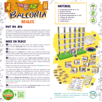l MATÉRIEL 2 1 immeuble (grille de 5 x 5) 22 blocs balcons 3 blocs portes d’entrée 22 jetons (numérotés de 1 à 22) 1 disque de sélection 1 carnet de score 2 aides de jeu l RÈGLES 20min 10+ BUT DU JEU Aménagez un immeuble en plaçant judicieusement des balcons dans la grille et en remplissant au mieux les conditions indiquées sur leurs faces pour marquer plus de points que votre adversaire. Tenez compte des goûts et aversions des habitants afin que tout le monde se sente bien et que l’harmonie règne dans le quartier. 6 MISE EN PLACE 1 Votre adversaire et vous devez vous asseoir l’un(e) en face de l’autre. Placez l’immeuble entre vous, au centre de la table. 5 2 Placez les 22 blocs balcons (intérieur jaune) sur la table. 3 Mélangez les 22 jetons face cachée, puis remettez 8 jetons dans la boîte sans consulter leur numéro (vous n’en aurez pas besoin pour cette partie). Il doit vous rester 14 jetons face cachée. 4 4 Sélectionnez au hasard 1 des 3 blocs portes d’entrée (intérieur 1 rose). Rangez les 2 blocs restants dans la boîte (vous n’en aurez pas besoin pour cette partie). Placez le bloc portes d’entrée sélectionné dans la case vide centrale du bas de la grille. Repérez la couleur de la porte qui vous fait face (turquoise ou rose). Ce sera votre couleur pour cette partie. Sur cette porte figure une condition de score qui concernera tout l’immeuble et s’appliquera uniquement pour vous à la fin de la partie. Vous n’avez pas la même condition que votre adversaire ! Vous trouverez une description détaillée des blocs portes d’entrée à la page 3. 2 5 Prenez le disque de sélection et placez-le à côté de l’immeuble, entre votre adversaire et vous. Le côté turquoise doit être orienté vers la personne turquoise, tandis que le côté rose doit être orienté vers la personne rose. 3 6 Prenez chacun(e) une feuille du carnet de score (vous en aurez besoin à la fin de la partie) et une aide de jeu. 1 Remarque : Avant votre première partie, assemblez le disque de sélection à deux épaisseurs à l’aide des autocollants double face fournis. 6 DÉROULEMENT DE LA PARTIE l La personne rose place le balcon qui lui convient dans l’immeuble (adjacent à un autre balcon ou à la porte d’entrée) de sorte que la face choisie soit orientée vers elle : Remarque : Vous ne devez en aucun cas regarder le côté de l’immeuble de votre adversaire, et ce, tout au long de la partie. Chaque tour, l’un(e) de vous sélectionne un bloc balcons et l’autre le place dans l’immeuble (vous alternez les rôles à chaque tour). ‣ La personne turquoise commence la partie. Elle révèle l’un des jetons face cachée, puis prend le bloc balcons correspondant à son numéro. ‣ La personne turquoise regarde ensuite chaque face du bloc, en choisit 2 adjacentes et place le bloc sur le disque de sélection, en veillant à mettre les 2 faces choisies de son côté du disque (sur la couleur turquoise). La personne turquoise obtient ainsi le balcon de la face opposée : ‣ La personne rose prend le disque de sélection avec le bloc. Elle peut consulter les 4 faces du bloc, mais seules 2 d’entre elles lui sont disponibles (celles du côté rose du disque de sélection). ‣ Puis, la personne rose choisit 1 de ces 2 faces et place le bloc balcons dans l’immeuble, de sorte que la face choisie soit de son côté. FIN DE LA PARTIE Important ! Chaque nouveau balcon doit être adjacent orthogonalement (verticalement ou horizontalement) à au moins un des balcons précédemment placés, même au rezde-chaussée. Le premier balcon doit être adjacent à la porte d’entrée (en haut, à gauche ou à droite). Un balcon peut être placé au-dessus d’une case vide, tant qu’il est adjacent orthogonalement à au moins un autre balcon. La partie prend fin après que le dernier jeton a été révélé et que le bloc balcons correspondant a été placé dans l’immeuble. À la fin de la partie, l’immeuble doit être composé de 15 blocs (1 bloc portes d’entrée et 14 blocs balcons). Procédez ensuite au décompte final. l DÉCOMPTE FINAL Prenez chacun(e) votre feuille de score (vous pouvez rayer les cases vides de la grille pour y voir plus clair). Comptez les points pour chaque bloc de votre côté (y compris le bloc portes d’entrée qui concerne tous vos balcons) et comparez vos scores. Voir Aide au décompte, page 3. Remarque : La personne qui place le bloc balcons dans l’immeuble décide également de la face qui sera orientée vers son adversaire (puisqu’elle a pu regarder toutes les faces du bloc avant d’en choisir une pour elle). Le tour prend alors fin et vous échangez les rôles pour le tour suivant : la personne rose placera le bloc balcons sur le disque de sélection, et la personne turquoise placera ce bloc dans l’immeuble. La personne qui a le plus de points l’emporte. En cas d’égalité, la personne qui a le plus de points avec le bloc portes d’entrée l’emporte. Si l’égalité persiste, pensez à la colocation ! Exemple d’un tour : La personne turquoise révèle le jeton VARIANTES . Au lieu de placer chaque nouveau bloc balcons adjacent à au moins un bloc placé précédemment, vous pouvez le placer où vous voulez. Elle prend le bloc balcons portant ce numéro, choisit 2 faces adjacentes qui l’intéressent, puis place le bloc sur le disque de sélection (en veillant à ce que ces 2 faces soient de son côté turquoise du disque). Vous pouvez également décider de placer le bloc portes d’entrée dans une autre case de la rangée du bas (vous n’êtes pas obligé(e) de le mettre dans la case centrale). Puis, la personne rose récupère le disque de sélection et choisit 1 des 2 faces qui lui sont proposées (côté rose du disque). Enfin, pour des parties plus longues, essayez de remplir entièrement l’immeuble ! 2 Remarque : Vous pouvez aussi combiner ces trois variantes. Les points : l AIDE AU DÉCOMPTE La plu
