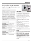 Di sposit i fs d ' a ct i v at i o n de po r te s Interrupteurs mains libres CM-333 alimentés par piles, à infrarouge actif avec relais de sortie INSTRUCTIONS D’INSTALLATION 1. DESCRIPTION GÉNÉRALE Les interrupteurs mains libres Sure-WaveMC sont des dispositifs à infrarouge actif utilisant la technologie de détection de micros rafales qui sont conçus pour une utilisation dans des applications de contrôle de portes automatiques conformes à l’ADA. Les interrupteurs éliminent la propagation de germes en évitant le contact physique et en offrant aux occupants de l’immeuble une grande commodité lors de leurs déplacements dans les locaux. Les interrupteursSure-WaveMC sont offerts avec des plaques en acier inoxydable ou en polycarbonate résistant aux chocs, en configurations étroite (jambage), à commande unique ou à commande double. Tous les modèles sont conformes à la norme ROHS et sont fabriqués sans plomb. 3. APPLICATION Les interrupteurs mains libres alimentés à piles Sure-WaveMC sont conformes à l’American Disability Act (ADA) et procurent des entrées et sorties à accès facile aux immeubles et toilettes. Leur fabrication robuste les rend parfaits pour les portes automatiques à faible énergie, les fenêtres de commande, les portes intérieures et extérieures de pratiquement tout établissement commercial (bureau, vente), institutionnel (école, hôpital ou clinique), ou industriel (production). Les plaques sont offertes en 3 largeurs standards : 2. SPÉCIFICATIONS CM-333: 2 3/4 po x 4 1/2 po en polycarbonate ou acier inoxydable, convient aux coffrets électriques à commande unique. Nb de détecteurs à IR 1 CM-333/N: 11 3/4 po x 4 1/2 po en polycarbonate ou acier inoxydable, convient aux cadres de porte de 1 3/4 po ou le coffret de jambage CM-23D. Piles (fournies) (2) alcalines AA (fournies) Estimation de durée de vie des piles 2 ans (basée sur 100 opérations/jour) Portée de fonctionnement standard 1 po à 12 po (25,4 mm à 304 mm) Ensemble d’usine to à 6po (152 mm) Mode de fonctionnement Momentané Momentané avec alarme Entrées Entrée “Requête de sortie” externe (contact de porte) Sortie de relais (1) en forme de C (SPDT) Capacité des contacts de relais 2 A @ 30 V c.c. Type de sortie À sécurité non intégrée CM-333/W: 4 1/2 po x 4 1/2 po en polycarbonate ou acier inoxydable, convient aux coffrets électriques à commande unique, à commande double ou 4 x 4. Il est possible de commander les plaques vierges, avec le symbole de main agitée (/40), avec le symbole de main agitée et les mots : WAVE TO OPEN (/41) ou avec l’icône de main agitée, celui de handicapé et les mots : WAVE TO OPEN (/42). 4. INSTALLATION Montage Il est possible de monter le Sure-WaveMC dans les jambages de porte, dans des coffrets électriques à commande unique ou double, ou dans des boîtiers 4 x 4. NOTE : Il est recommandé d’utiliser le joint d’étanchéité (inclus) pour les installations à l’extérieur ou dans des endroits humides. S’il est utilisé dans une installation de portes automatiques conformément à la norme ANSI A156.10 / A156.19, choisir une des trois sous-sections de montage suivantes : COFFRET ÉLECTRIQUE À COMMANDE UNIQUE: CM-333 Page 1 of 4 INTERRUPTEURS MAINS LIBRES CM-333 ALIMENTÉS PAR PILES, À INFRAROUGE ACTIF AVEC RELAIS DE SORTIE I NSTRUCT IONS D’INSTAL LATION 1. a) En cas d’utilisation d’un coffret complètement d’équerre et encastré dans le mur (voir le schéma 1). 1. b) En cas d’utilisation d’un boîtier de surface, s’assurer qu’il soit d’équerre et bien fixé. 2. Apporter le câble électrique à 2 brins dans le dos ou le côté du boîtier et laisser une longueur d’environ 6 po pour le branchement du fil. 3. Brancher le câble à 2 brins au dispositif selon les instructions de la section sur le câblage (suivante). 4. À l’aide du commutateur DIP situé à l’extrémité de l’unité, régler le mode de fonctionnement. (Voir la section 6 .) 5. Fixer l’unité au boîtier à l’aide de 2 vis no 6-32 fournies. 6. Fixer la plaque à l’unité à l’aide des deux vis à métaux no 6-32 x 3/8 ou de vis inviolables. Ne pas serrer trop fort!!! COFFRET ÉLECTRIQUE À COMMANDE DOUBLE (ou 4 x 4) : CM-333W SCHÉMA 1 INSTALLATION APPROPRIÉE D’UN BOÎTIER 3. Brancher le câble à 2 brins au dispositif selon les instructions de la section sur le câblage (suivante). 4. À l’aide du commutateur DIP situé à l’extrémité de l’unité, régler le mode de fonctionnement. (Voir la section 4.) 5. Fixer l’unité au boîtier à l’aide de 2 vis no 6-32 fournies. 6. AFixer la plaque à l’unité à l’aide des deux vis à métaux no 6-32 x 3/8 ou de vis inviolables. Ne pas serrer trop fort!!! CADRE DE PORTE : CM-324N 1. a) Si le montage est effectué directement dans un ambage d’aluminium de 1 3/4 po, faire une entaille dans le cadre de porte à l’emplacement prévu selon le diagramme 2. (Voir le schéma 3). Percer et fileter deux trous de montage comme illustré. 1. b) ISi le montage est effectué dans le boîtier de jambage profond CM-23D, monter en premier le boîtier de jambage selon les instructions fournies avec le boîtier. En utilisation le CM-23D comme guide, percer un trou d’accès dans le jambage afin d’y faire passer le câble. Fini mural lisse Mur 2. Apporter le câble électrique à 2 brins dans le dos ou le côté du boîtier et laisser une longueur d’environ 6 po pour le branchement du fil. 2. Apporter le câble électrique à 2 brins dans le dos ou le côté du boîtier (ou jambage) et laisser une longueur d’environ 6 po pour le branchement du fil. Encastré 3. Brancher le câble à 2 brins au dispositif selon les instructions de la section sur le câblage (suivante). Boîtier mural 4. À l’aide du commutateur DIP situé à l’extrémité de l’unité, régler le mode de fonctionnement. (Voir la section 6.) 5. Fixer l’unité au boîtier ou au jambage à l