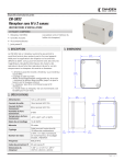 Dispositifs d'activation de portes CM-SRX2 Récepteur sans fil à 2 canaux INSTRUCTIONS D'INSTALLATION CE PAQUET COMPREND: 1 - Récepteur CM-SRX2 (Les pièces sont à l'intérieur du boîtier du récepteur) 4 - Chevilles murales 4 - Vis autotaraudeuses 1 - Joint passe-fil 1. DESCRIPTION 3. DIMENSIONS Le CM-SRX2 est un récepteur autonome qui permet le contrôle d'accès à deux portes à partir d'un seul appareil. Idéal pour les applications de réception ou les endroits difficiles à câbler. Conçu pour fonctionner avec des serrures magnétiques, des gâches électriques, des claviers, des opérateurs de portail et des opérateurs de porte. Les kits comprennent un récepteur de canal et un émetteur. 2 1/2'' [64mm] • L'émetteur peut être monté à l'intérieur ou à l'extérieur. Classé IP65. • Cryptage à code tournant • Mode verrouillage/bistable configurable sur le terrain : maintient les portes déverrouillées jusqu'à ce que le bouton soit à nouveau enfoncé • Le récepteur peut être contrôlé par jusqu'à 30 émetteurs • Le mode relais du récepteur est soit momentané, soit bistable pour le 2e relais. 2. SPÉCIFICATIONS 12V ou 24V AC/DC Courant de veille 18mA (entrée VDC12V) Courant de fonctionnement Humidité de fonctionnement Température de fonctionnement 2 1/4'' [56mm] 2'' [50mm] 0-95% 3 3/4'' [95mm] 3 1/8'' [79mm] -20°C à 85°C (-4°F à 185°F) 1A @ 30VDC Mémoire 30 codes Nombre de relais 5/8'' [15mm] 80mA (entrée VDC12V) Relais de verrouillage Cryptage 3 3/4'' [95mm] 2 1/2'' [64mm] Alimentation 2 1/4'' [56mm] Code tournant haute sécurité. 19 billions de combinaisons 2 SPST ; 1er relais momentané, 2e momentané ou verrouillage/ bistable, 1A@30VDC Fréquence 868,35 MHz Indice de protection IP 65 avec passe-fil Dimensions du récepteur 7-3/8" L x 3-1/4" H x 1-5/8" P (187mm x 82mm x 42mm) 5/8'' [15mm] 1 5/8'' [40mm] Page 1 sur 3 CM-SRX2 Récepteur Sans Fil à 2 Canauxr INSTRUCTIONS D'INSTALLATION Imp (Impulsion) = Lorsque vous appuyez et relâchez le bouton de l'émetteur, le relais se déclenche pendant au moins une seconde. Si vous appuyez sur le bouton de l'émetteur et le maintenez enfoncé, le relais se déclenche pendant cinq secondes au maximum avant d'être relâché. Bies (Bi-Stable) = Le relais s'enclenche lorsque le bouton de l'émetteur est enfoncé et relâché la première fois. Le relais se désactive lorsque le bouton de l'émetteur est enfoncé et relâché la deuxième fois. Le changement de mode pour le relais 1 ne peut être effectué qu'en usine. La modification du mode du relais 1 ne peut être effectuée qu'en usine (contacter le service des ventes pour plus de détails). 4. INSTALLATION 3 4 6 7 1 Bies R1 R2 on off Imp GND ANT. MR PROG 5 6. PROGRAMMATION 12/24 V AC/DC Programmation manuelle 8 Off 24V On12V R2 R1 10 9 2 1. Connexion de l'antenne 6. Cavalier de réinitialisation 2. Cavalier 12/24V 7. Micro-interrupteur Impulsion/Bistable 3. LED de fonctionnement du canal 1 8. Alimentation électrique 4. LED de fonctionnement du canal 2 9. Sortie relais 1 5. Bouton de programmation 10 Sortie relais 2 Fixez la partie arrière du boîtier au mur à l'aide des chevilles et des vis fournies. Faites passer les câbles par le bas du récepteur. Connectez les câbles d'alimentation aux bornes 12/24V marquées sur la carte de circuit imprimé comme indiqué. (La borne gauche est positive) Scellez et couvrez la partie avant du récepteur à la base en utilisant les vis fournies. MR On Bies Off Imp. 12/24V ac/dc GND ANT R1 N.O. CM-SRX2 V2 Receiver R2 N.C. Off24V on12V + Appuyez sur le bouton de programmation du récepteur pendant 1 seconde et un signal acoustique retentira. Le récepteur entrera en mode programmation (voir tableau ci-dessous). Si le bouton de programmation du récepteur est maintenu enfoncé, le récepteur passera séquentiellement d'une configuration à l'autre. Une fois la configuration de programmation pour l'émetteur à enregistrer choisie, envoyez le code à programmer en appuyant sur le bouton respectif de l'émetteur (1 ou 2). Chaque fois qu'un émetteur est programmé, le récepteur émettra un signal acoustique de 0,5 seconde pour confirmer. Après 10 secondes sans programmation ou en appuyant sur les deux premiers boutons de l'émetteur, le récepteur sortira automatiquement du mode programmation en émettant deux bips d'une seconde. Si, lors de la programmation d'un émetteur, la mémoire du récepteur est pleine, le récepteur émettra 7 bips de 0,5 seconde et sortira de la programmation. Le récepteur est toujours configuré en mode multicanal. Configuration de la programmation de l'émetteur dans le récepteur Le 1er relais est activé par le canal 1 et le 2e relais par le canal 2 LED R1 LED R2 Clignotant Clignotant ON OFF OFF ON ON ON Programmation spéciale MagLock 12 or 24 V AC/DC Power Door Strike Door Strike Power Maglock Power 5. FONCTIONNEMENT Les deux LED rouges clignotent toutes les 5 secondes pour confirmer que le récepteur est sous tension. A la réception d'un code, le récepteur vérifie s'il est dans sa mémoire et active le relais correspondant. Le mode d'activation du relais est sélectionné en impulsion ou ON/OFF à l'aide du cavalier Imp/Bies. Seul le relais 2 peut être modifié par ce cavalier pour passer d'un mode impulsionnel à un mode bi-stable. Appuyez sur le canal de l'émetteur pour activer le relais 1 sur le récepteur Appuyez sur le canal de l'émetteur pour activer le relais 2 sur le récepteur Appuyez sur le canal de l'émetteur pour activer les deux relais en même temps * *Si le mode de fonctionnement est en mode de verrouillage/bistable ON/OFF, le relais 1 agira comme impulsion et le relais 2 comme ON/ OFF. Ainsi, lors de la première pression, le relais 1 fermera et ouvrira le contact et le relais 2 fermera uniquement. Lors de la deuxième pression, le relais 1 fermera et ouvrira le contact et le relais 2 ouvrira. REMARQUE: Chaque émetteur peut être configuré indépenda