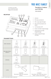 Vous trouverez ci-dessous de brèves informations concernant les Série Standard 10TD900HH1, Série Standard 10TD900HH2, Série Standard 10TD900HH3, Série Standard 10TD900HH4, Série Industrielle (NEMA 4) 10TD900INDHH1, Série Industrielle (NEMA 4) 10TD900INDHH2, Série Industrielle (NEMA 4) 10TD900INDHH3, Série Industrielle (NEMA 4) 10TD900INDHH4, Universel 10TD900HH1U, 10TD900PB et 10TD900TR. Ces appareils permettent une communication sans fil à 900 MHz pour diverses applications, allant des systèmes d'ouverture de porte aux mises à niveau sans contact. Le manuel couvre l'installation, la programmation (y compris la configuration des commutateurs DIP et l'apprentissage des transmetteurs), le remplacement de la pile et le dépannage courant.