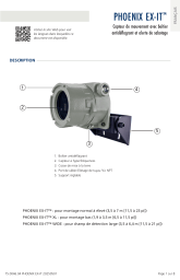 Vous trouverez ci-dessous de brèves informations sur PHOENIX EX-IT EX-IT, PHOENIX EX-IT EX-ITXL, PHOENIX EX-IT EX-ITWIDE. Ce capteur est conçu pour détecter les mouvements dans des environnements potentiellement explosifs. Il dispose d'un boîtier antidéflagrant et d'une alerte de sabotage intégrée, avec une technologie radar Doppler hyperfréquence. Les modèles EX-IT varient en hauteur de montage et en zone de détection. Les fonctionnalités supplémentaires incluent le réglage à distance, les options de filtre de détection et diverses paramètres configurables via une télécommande ou des boutons-poussoirs.
