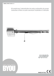 Vous trouverez ci-dessous de brèves informations sur JUMP Automatisation porte sectionnelle. Ce kit est conçu pour l’automatisation des portes sectionnelles de garage résidentielles. Il contient un opérateur électromécanique avec moteur en courant continu à 24 V et un guide avec courroie pour déplacer la porte. La centrale intégrée contrôle le moteur et les accessoires compatibles P.BY, F.BY, K.BY et SE.BY.