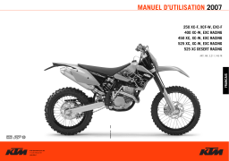 Ci-dessous, vous trouverez de brèves informations pour 250 XC-F, XCF-W, EXC-F, 400 XC-W, EXC RACING, 450 XC, XC-W, EXC RACING, 525 XC, XC-W, EXC RACING, 525 XC DESERT RACING. Ce manuel est un guide conçu pour aider les propriétaires à utiliser et à entretenir leurs motos de sport KTM. Il aborde des sujets tels que la sécurité, l'entretien, les réglages, et inclut des informations spécifiques aux modèles mentionnés. Il met l'accent sur l'importance de respecter les intervalles d'entretien et les recommandations du fabricant.
