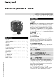 Vous trouverez ci-dessous de brèves informations sur les C6097A3004, C6097A3012, C6097A3038, C6097A3053, C6097A3079, C6097A3095, C6097A3111, C6097A3137, C6097B3002, C6097B3028. Ils servent au contrôle de la hausse ou de la baisse de la pression de gaz ou d'air. Les pressostats avec mise à l'état initial à main déclenchent le verrouillage après commutation. Le réarmement s'effectue en actionnant le dispositif de mise à l'état initial à main.