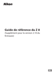 Vous trouverez ci-dessous de brèves informations pour Z 8. Ce guide vous permettra de découvrir rapidement les fonctions de votre nouvel appareil photo numérique, de la prise de photos et de vidéos à la lecture d'images, en passant par la navigation dans les menus et la personnalisation des paramètres.