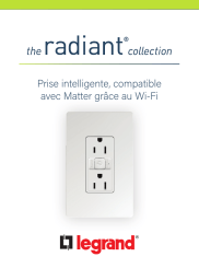 Vous trouverez ci-dessous de brèves informations sur radiant WWMRR15WH. Cet appareil est conçu pour être utilisé avec une plateforme de maison intelligente compatible avec Matter et se connecte au Wi-Fi 2,4 GHz. La prise comprend un voyant lumineux, un bouton marche/arrêt et une prise non contrôlée.