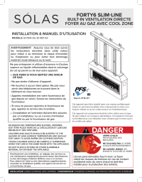 Ci-dessous, vous trouverez de brèves informations pour FORTY6 Slim-Line BI-46N-SS, FORTY6 Slim-Line BI-46P-SS. Ce foyer au gaz à ventilation directe est conçu pour une installation intégrée avec une zone froide pour plus de sécurité. Il peut être installé dans une maison préfabriquée ou mobile, selon les codes locaux. L'appareil est conçu pour être utilisé avec le type de gaz indiqué sur la plaque signalétique. La sécurité est primordiale, avec des avertissements sur les températures élevées et les procédures à suivre en cas d'odeur de gaz.