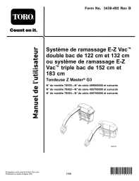 Manuels et Guides de l'Utilisateur pour Toro 48in and 52in E-Z Vac Twin Bagging System, Z Master G3 Mower. Nous avons trouvé 9 manuels pour téléchargements gratuits Manuel utilisateur