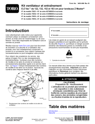 Des pages: 8 Toro Blower and Drive Kit, 60in E-Z Vac for Z Master Mower Guide d'installation