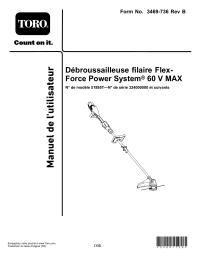 Des pages: 36 Toro Flex-Force Power System 60V 43CM String Trimmer Manuel utilisateur