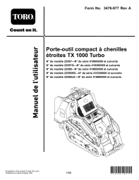 Des pages: 62 Toro TX 1000 Turbo Narrow Track Compact Tool Carrier Manuel utilisateur