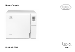 Vous trouverez ci-dessous de brèves informations pour Lexa MN-111. Ce stérilisateur à vapeur est conçu pour la stérilisation d'instruments médicaux et dentaires. Il propose divers cycles de stérilisation adaptés à différents types de charges, y compris les instruments emballés et non emballés. Le stérilisateur offre également des options de traçabilité pour assurer un suivi précis des cycles. Il possède un écran tactile intuitif et des fonctions de gestion de l'énergie. Un entretien régulier est essentiel pour garantir un fonctionnement optimal.