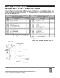 Vous trouverez ci-dessous de brèves informations pour *G7 / *GC2 SD, TC,*G7 / *GC2 SC, SL, SM, TL. Ce document fournit des instructions d'installation pour les sacs de pièces supplémentaires des fournaises à gaz mono et bi-étagées. Il met en évidence l'importance d'une ventilation appropriée et recommande un montage à sec des composants avant l'installation permanente. Le document répertorie également le contenu des sacs de pièces supplémentaires pour les différents modèles de fournaises.