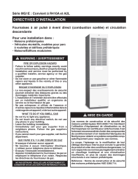 Ci-dessous, vous trouverez de brèves informations pour MG1. Ces fournaises au gaz sont destinées aux maisons/bâtiments préfabriqués et modulaires. Il est crucial de lire attentivement ce manuel pour se familiariser avec les fonctions et l'utilisation de l'appareil avant de tenter de l'utiliser ou de l'entretenir. Une bonne maintenance, un filtre propre et un système d'évacuation approprié sont cruciaux. Familiarisez-vous avec les commandes de coupure du gaz et de l'électricité.